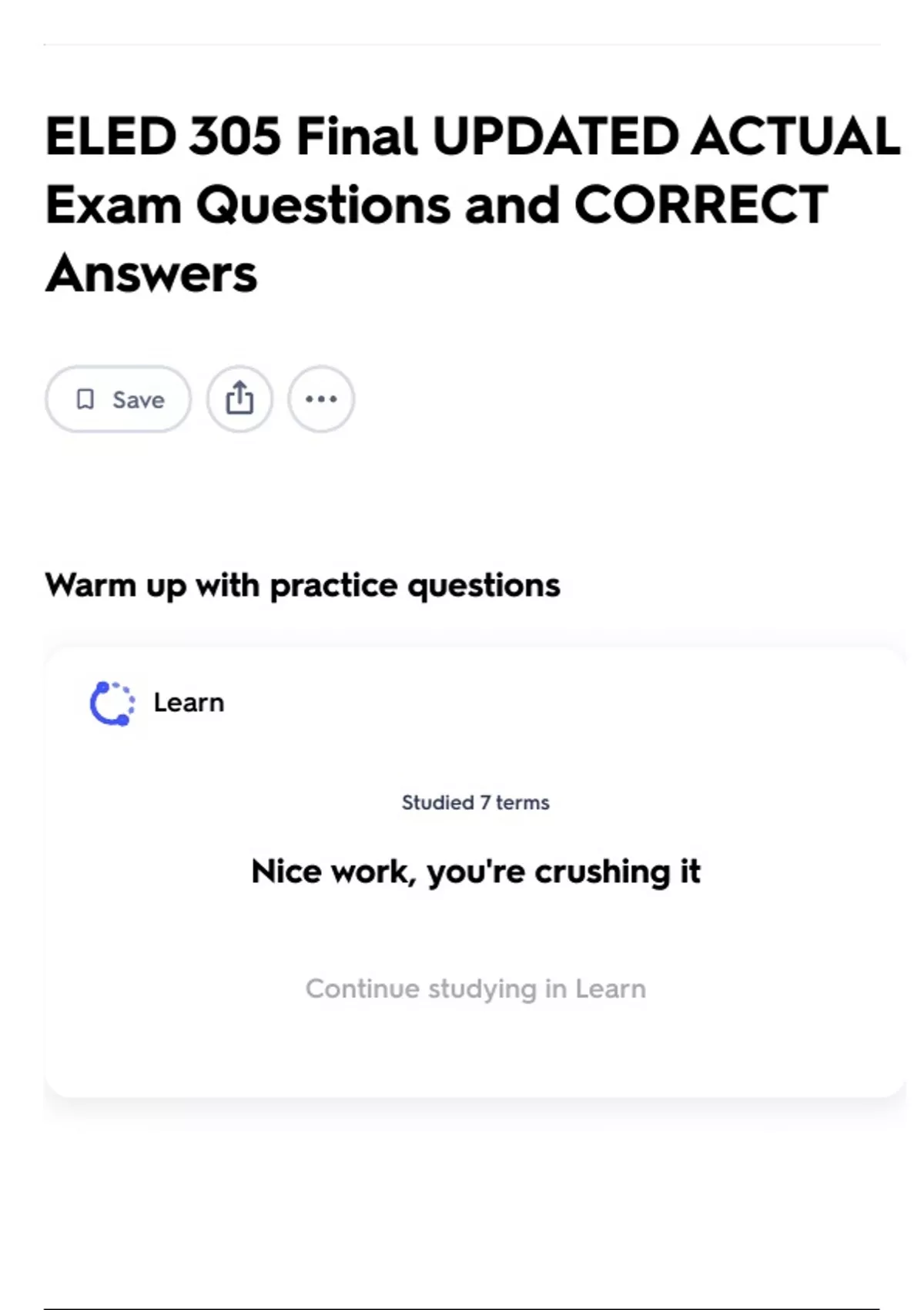 Continue studying in Learn