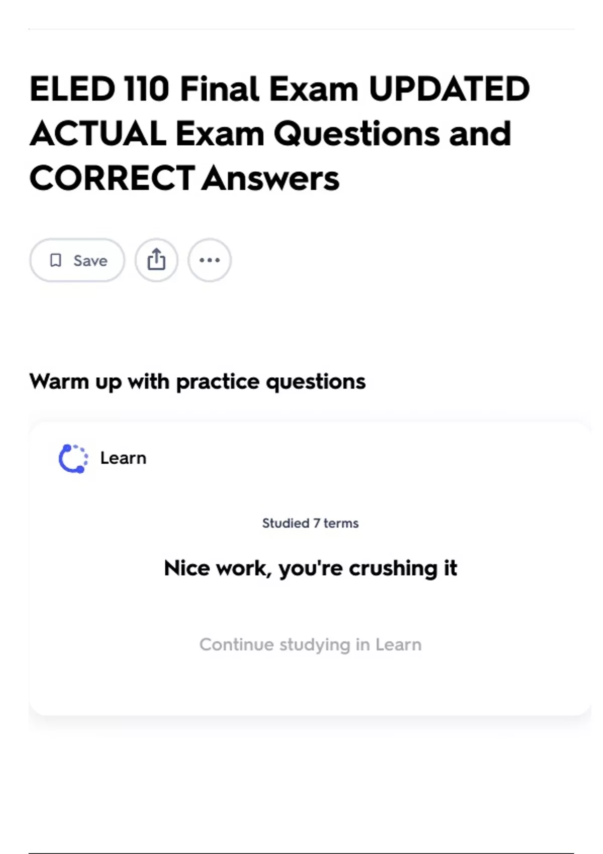 Continue studying in Learn
