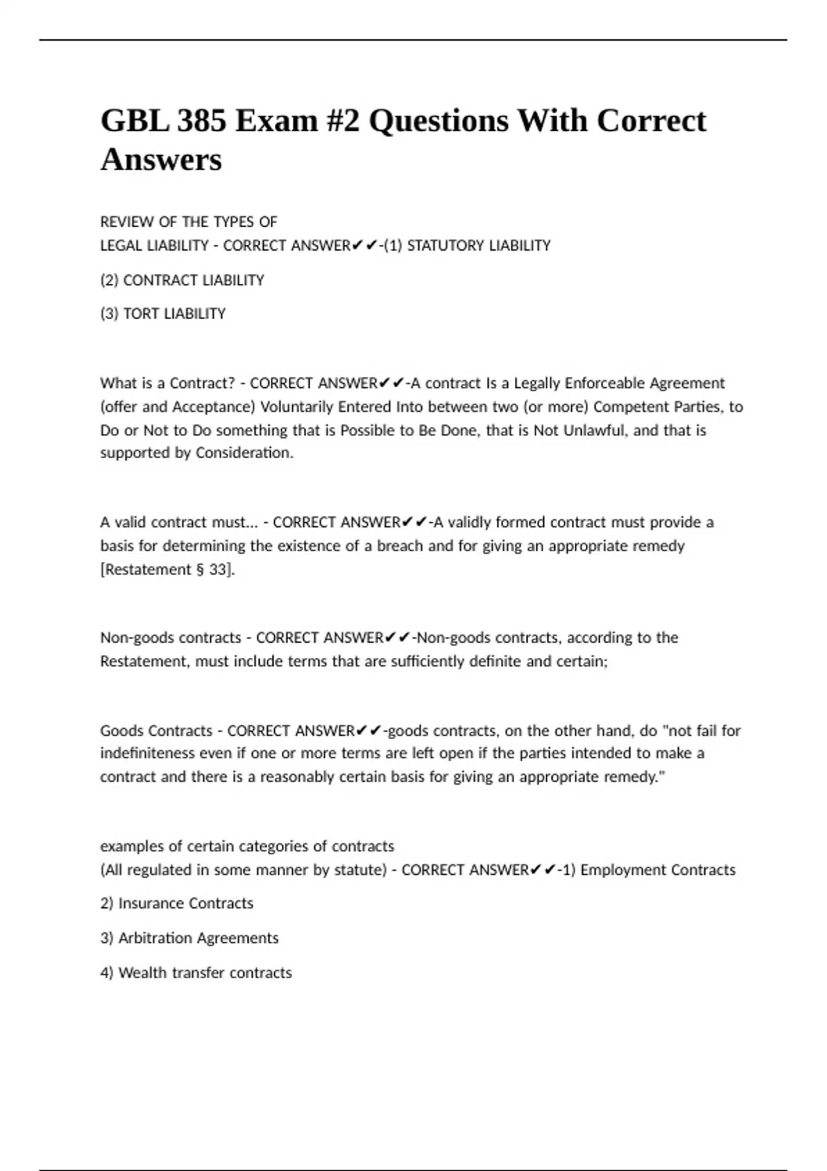 A |valid |contract |must... |- |CORRECT |ANSWER✔✔-A |validly |formed |contract |must |provide |a |