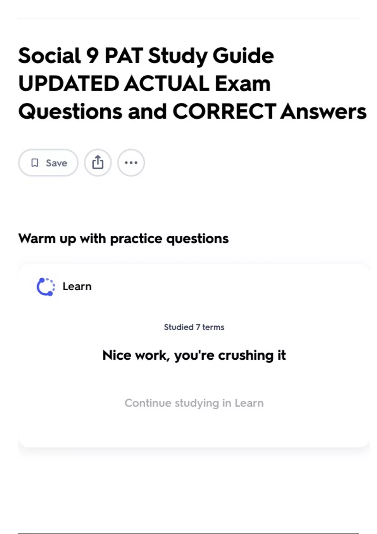 Continue studying in Learn