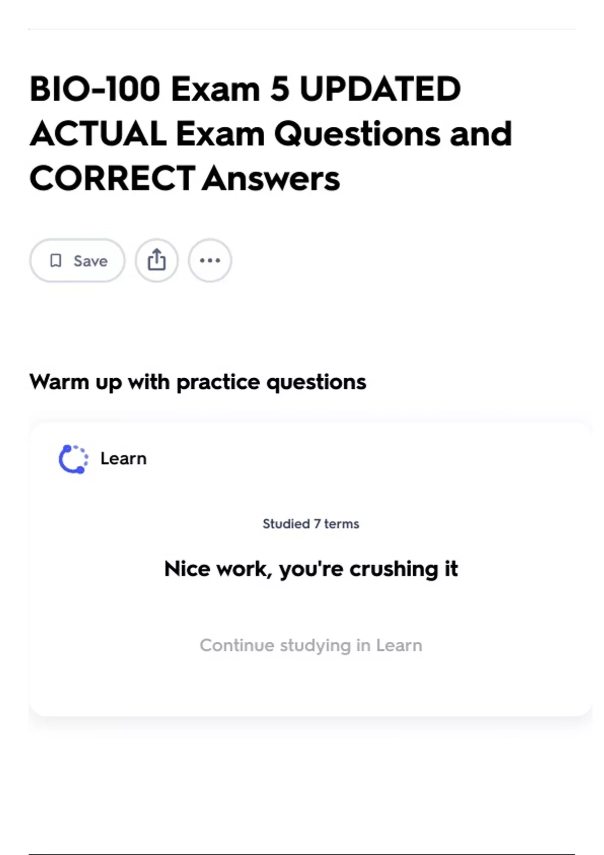 BIO-100 Exam 5 UPDATED ACTUAL Exam Questions and CORRECT Answers