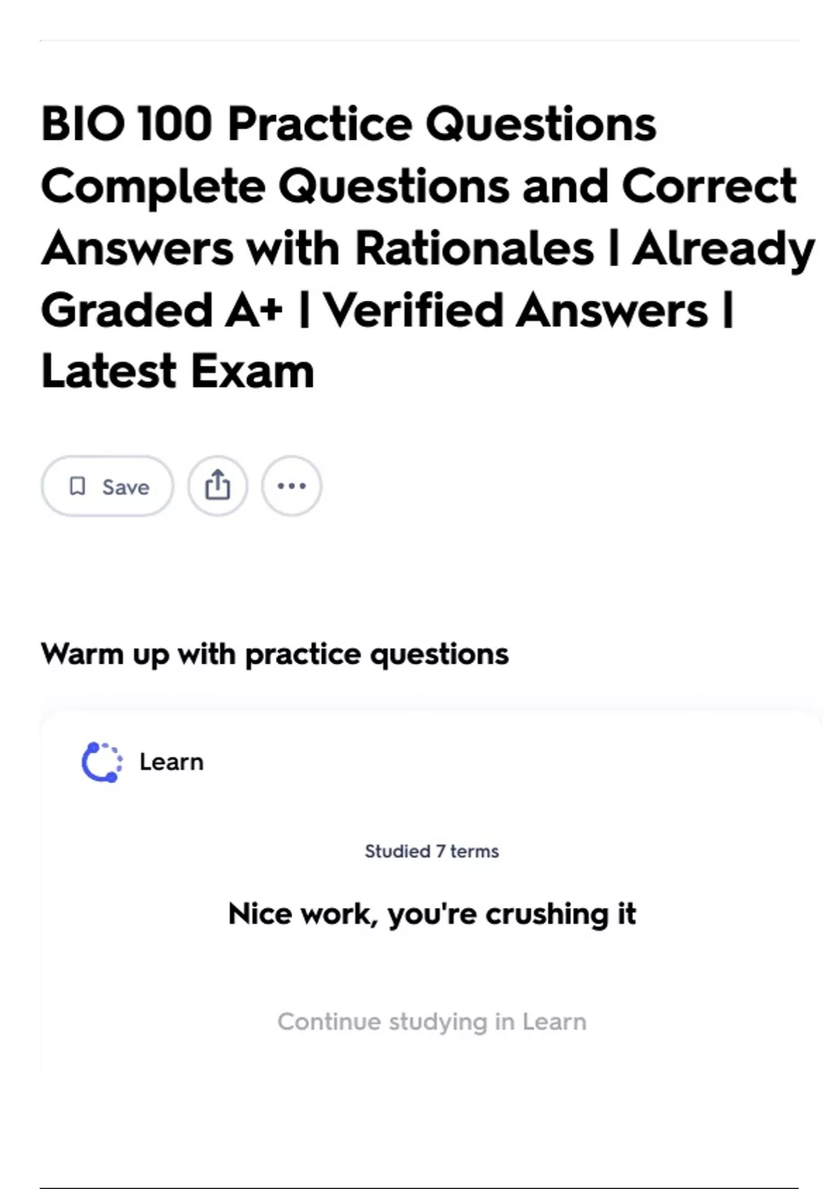 BIO 100 Practice Questions Complete Questions and Correct Answers with Rationales | Already Graded A+ | Verified Answers | Latest Exam