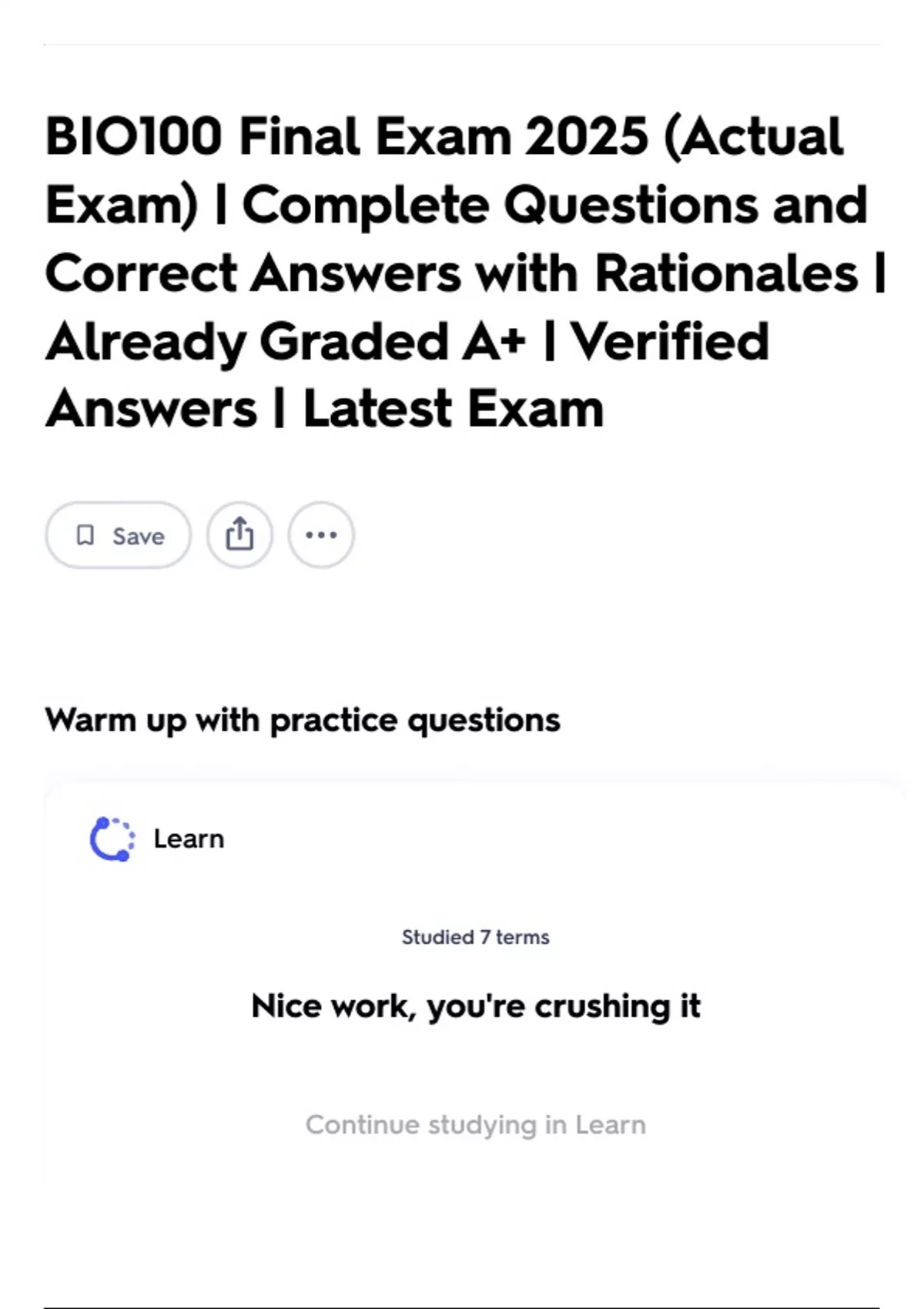Continue studying in Learn