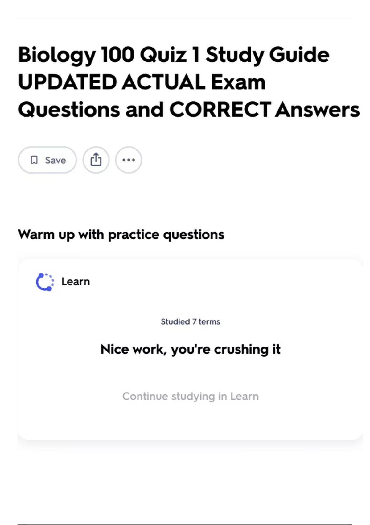 Biology 100 Quiz 1 Study Guide UPDATED ACTUAL Exam Questions and CORRECT Answers