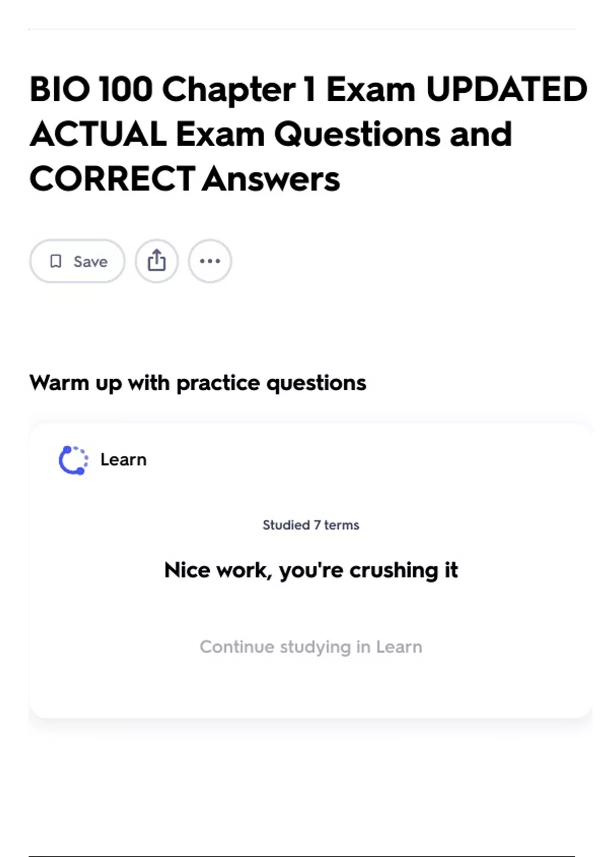 Continue studying in Learn