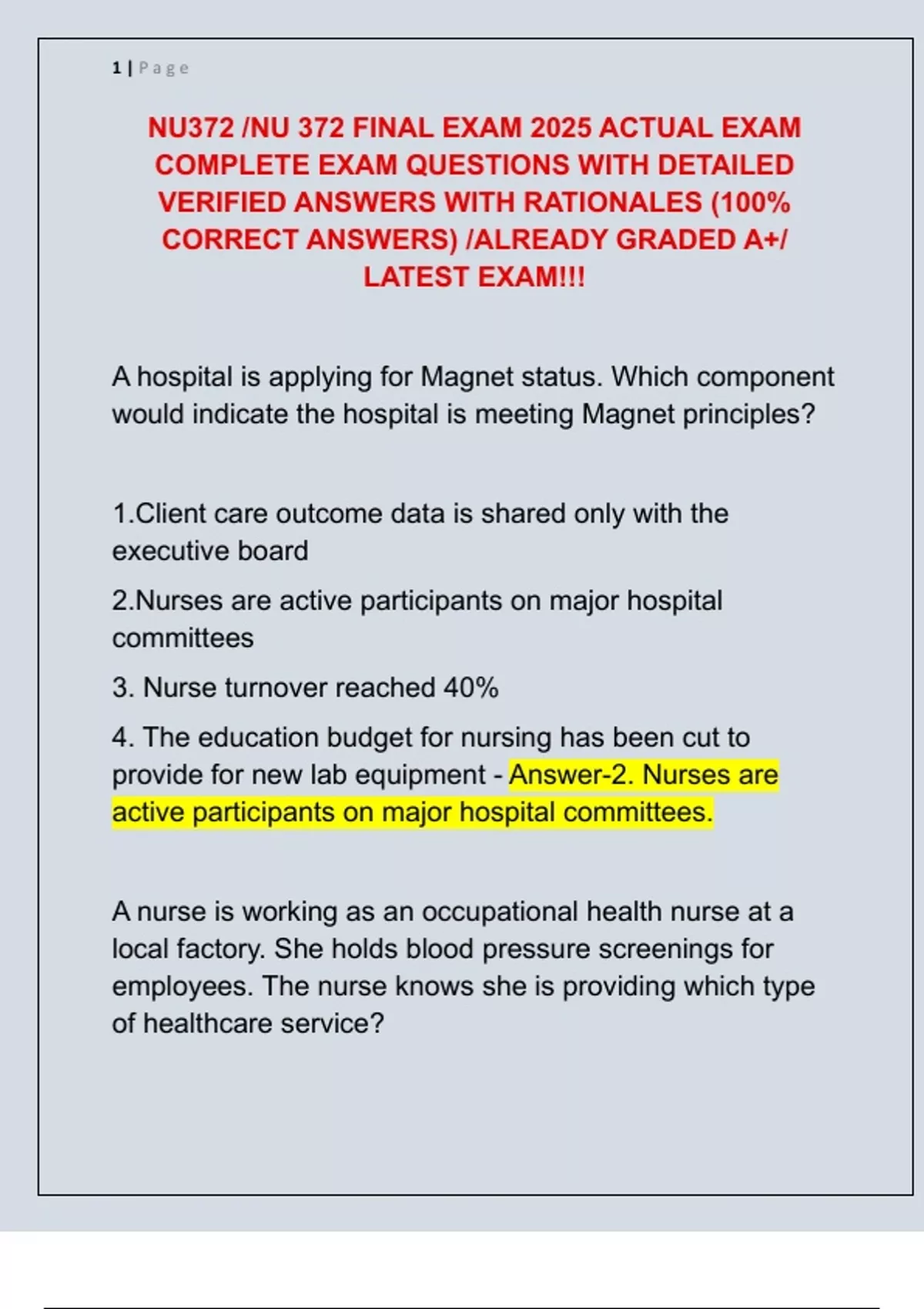 NU372 /NU 372 FINAL EXAM 2025 ACTUAL EXAM