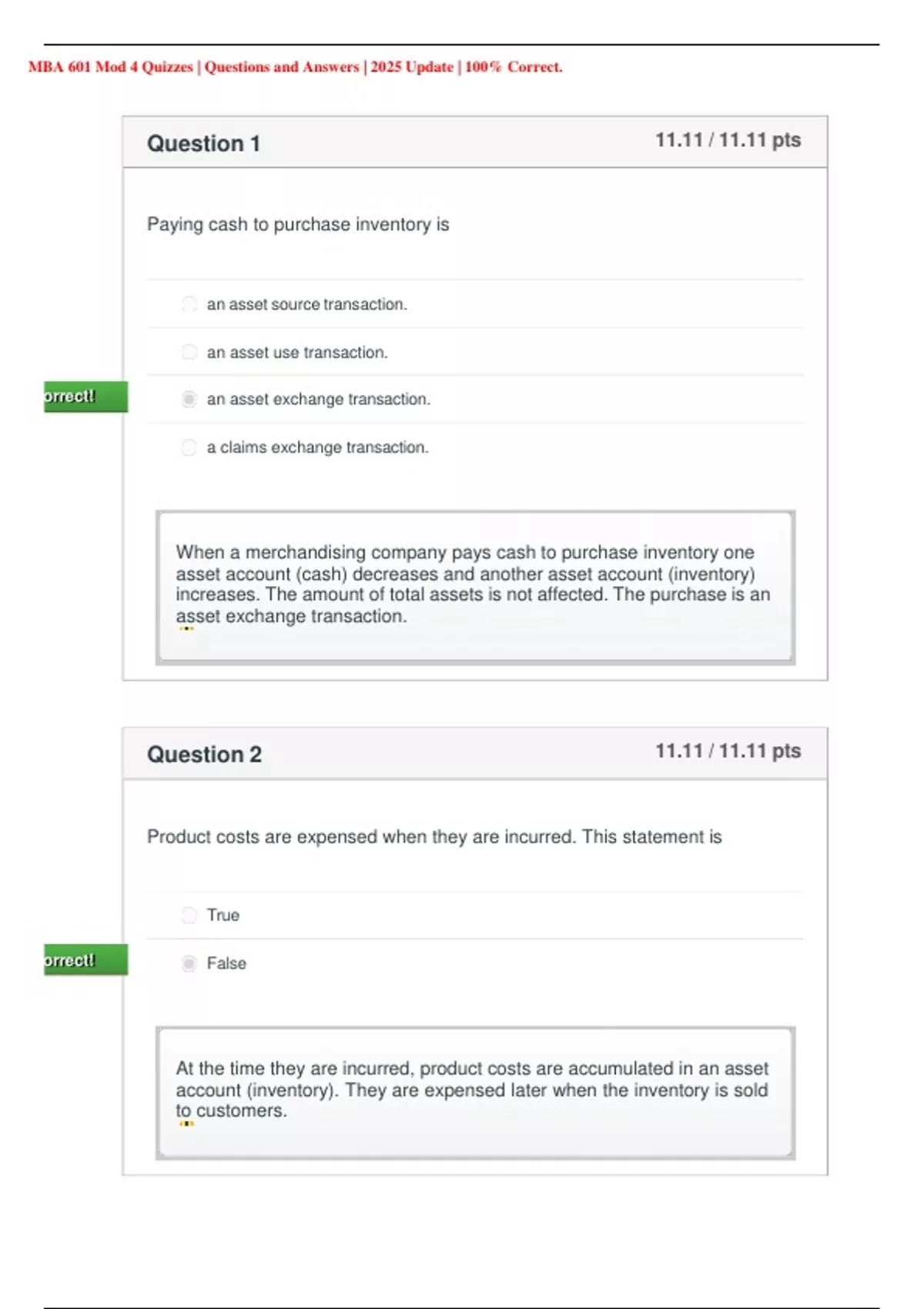 MBA 601 Mod 4 Quizzes | Questions and Answers | 2025 Update | 100% Correct.