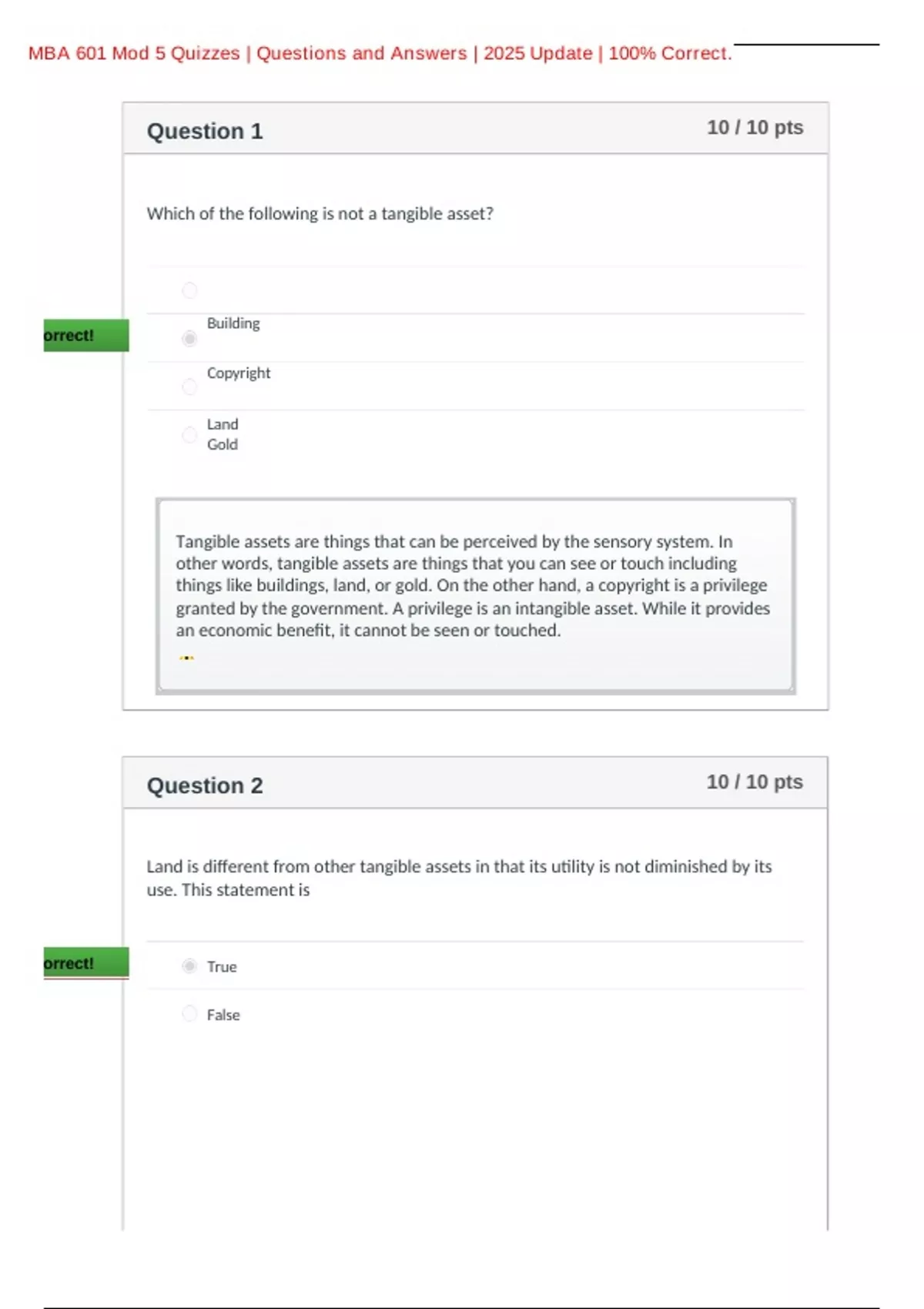 MBA 601 Mod 5 Quizzes | Questions and Answers | 2025 Update | 100% Correct.