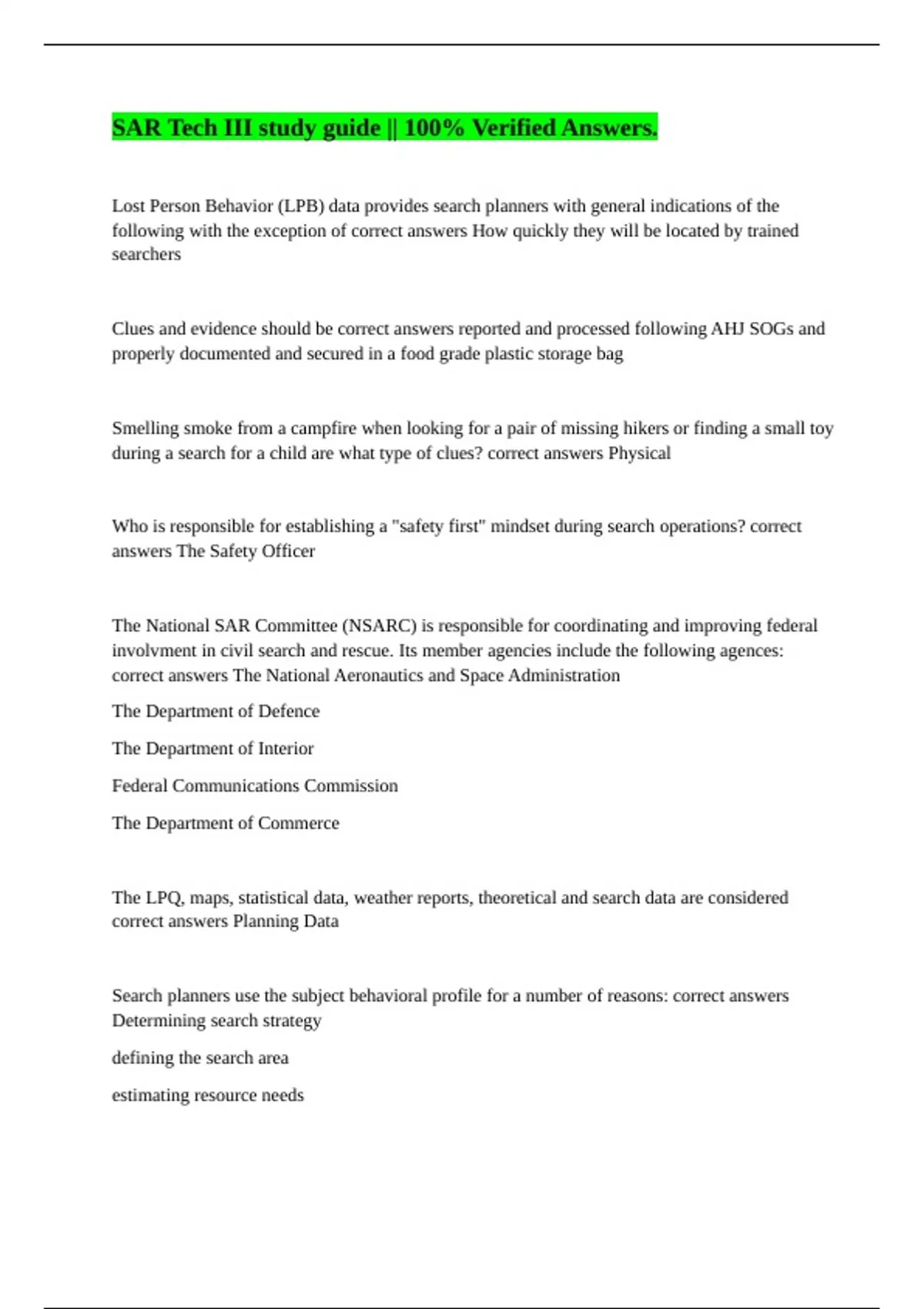 following with the exception of correct answers How quickly they will be located by trained