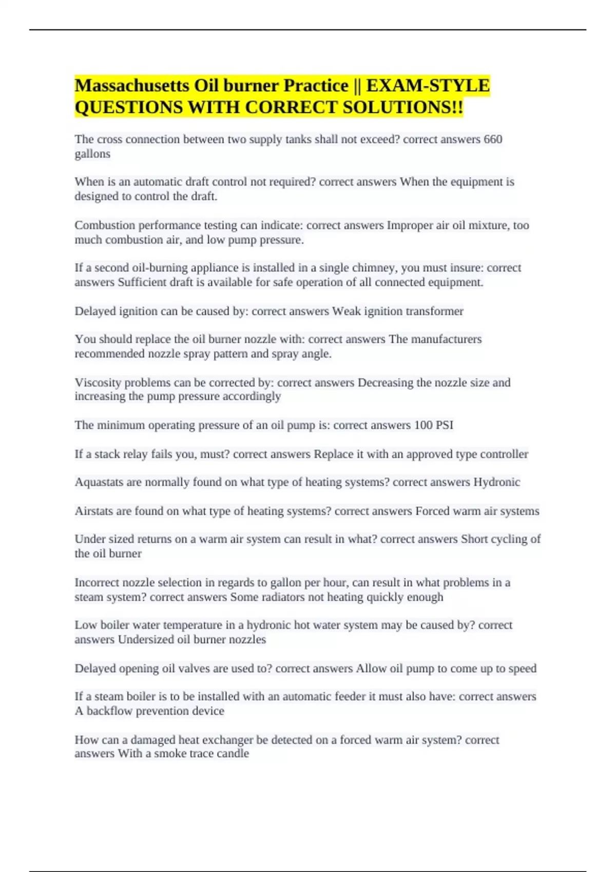 Massachusetts Oil burner Practice || EXAM-STYLE QUESTIONS WITH CORRECT SOLUTIONS!!