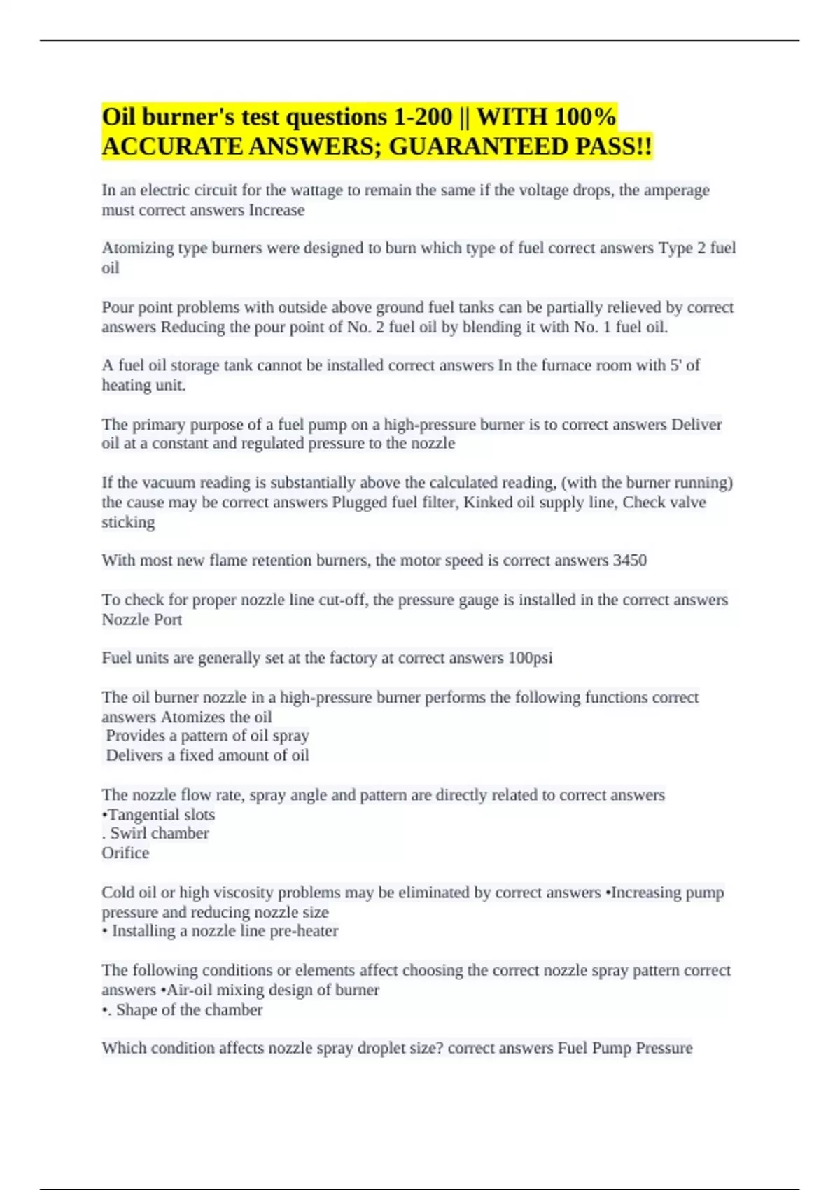 ACCURATE ANSWERS; GUARANTEED PASS!!