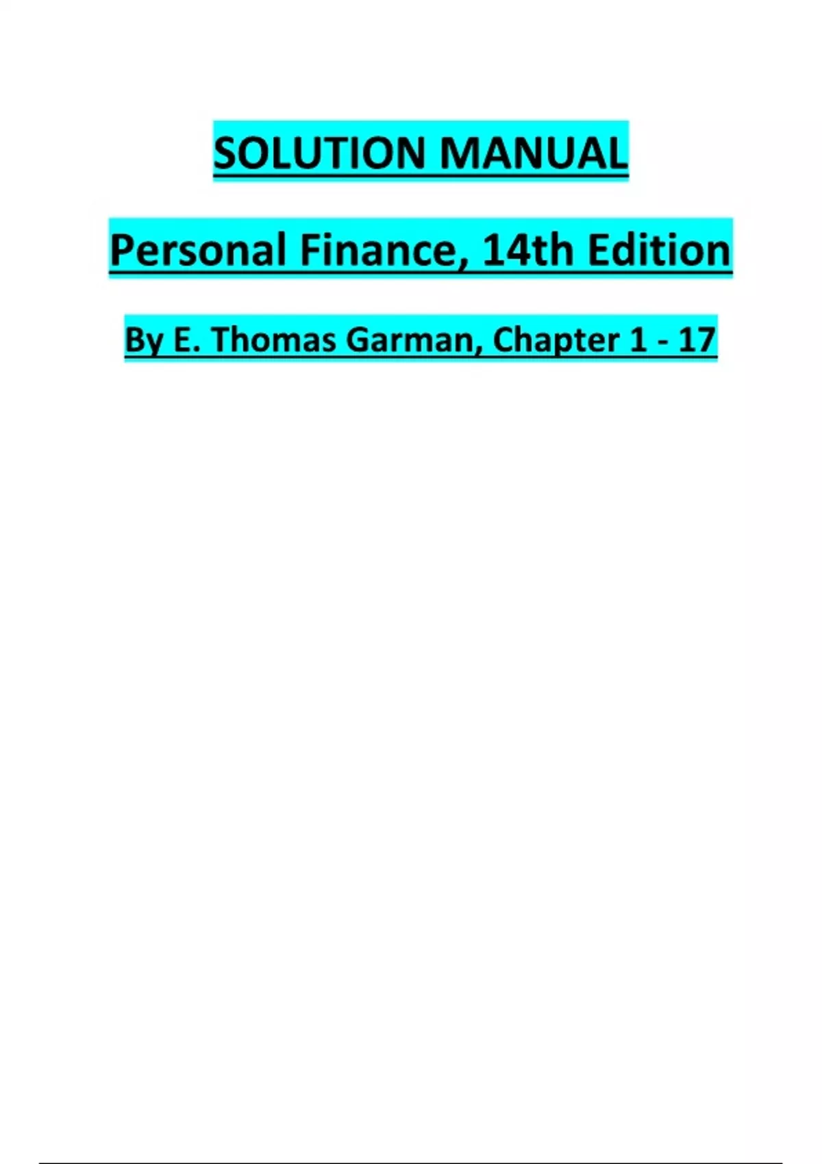 Solution Manual and Answer Guide for Personal Finance, 14th Edition By (E. Thomas Garman, 2024) Verified Chapters 1 - 17, Complete Newest Version