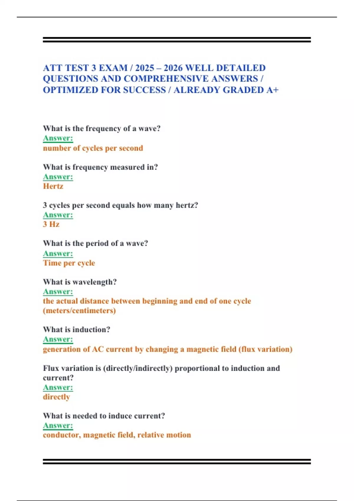ATT TEST 3 EXAM / 2025 – 2026 WELL DETAILED