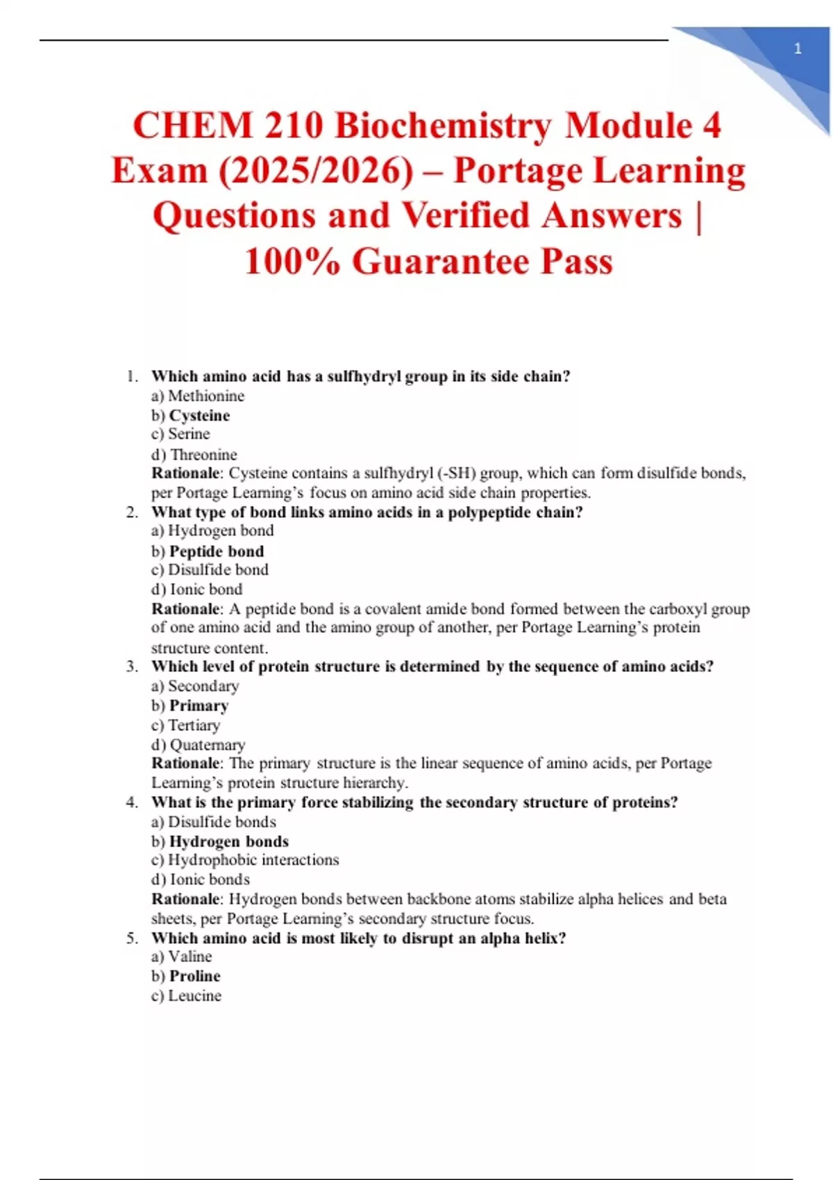 CHEM 210 Biochemistry Module 4 Exam (2025/2026) – Portage Learning Questions and Verified Answers | 100% Guarantee Pass