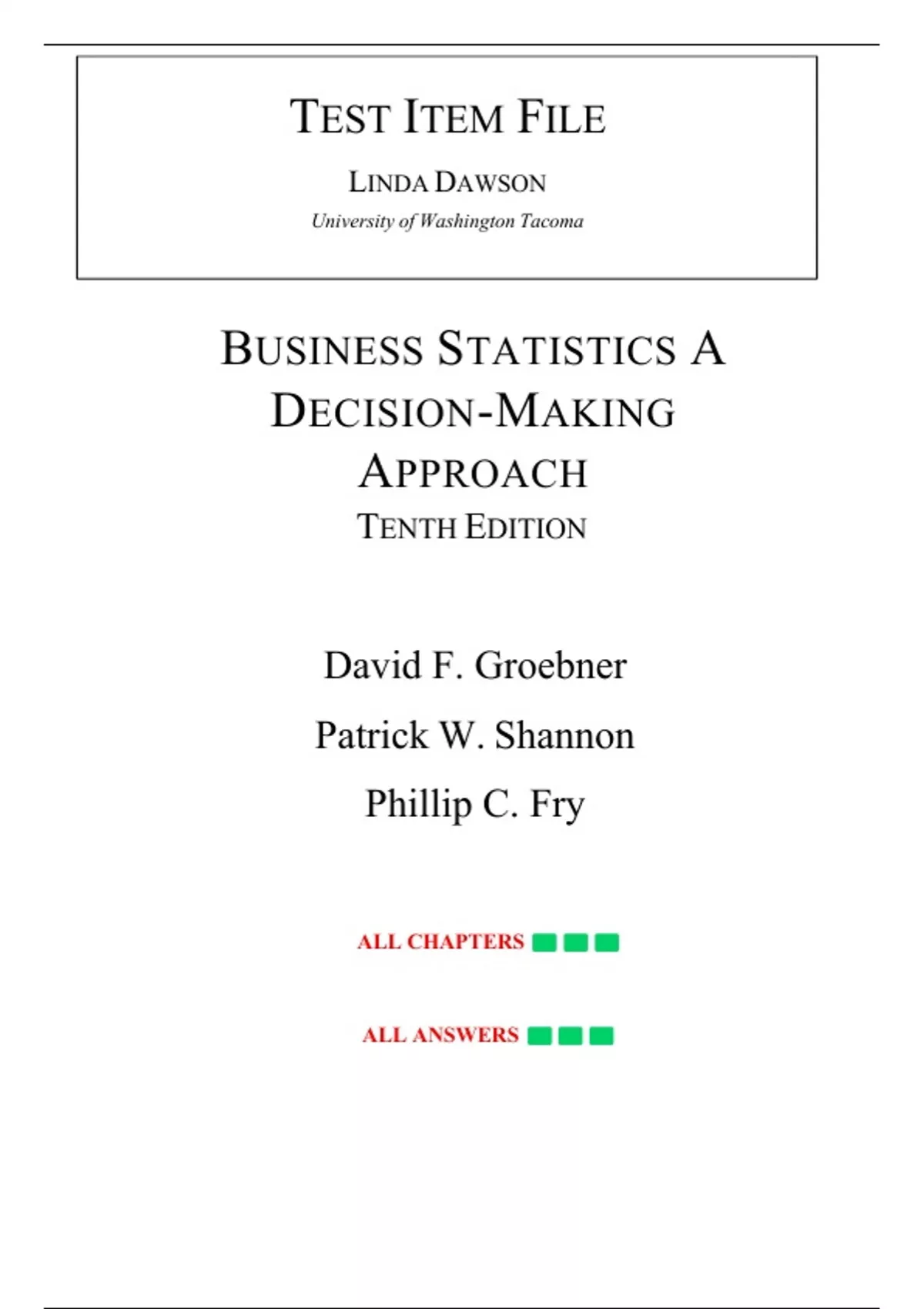 Test Bank for Business Statistics: A Decision-Making Approach 10th Edition, by David Groebner |Chapter 1-20