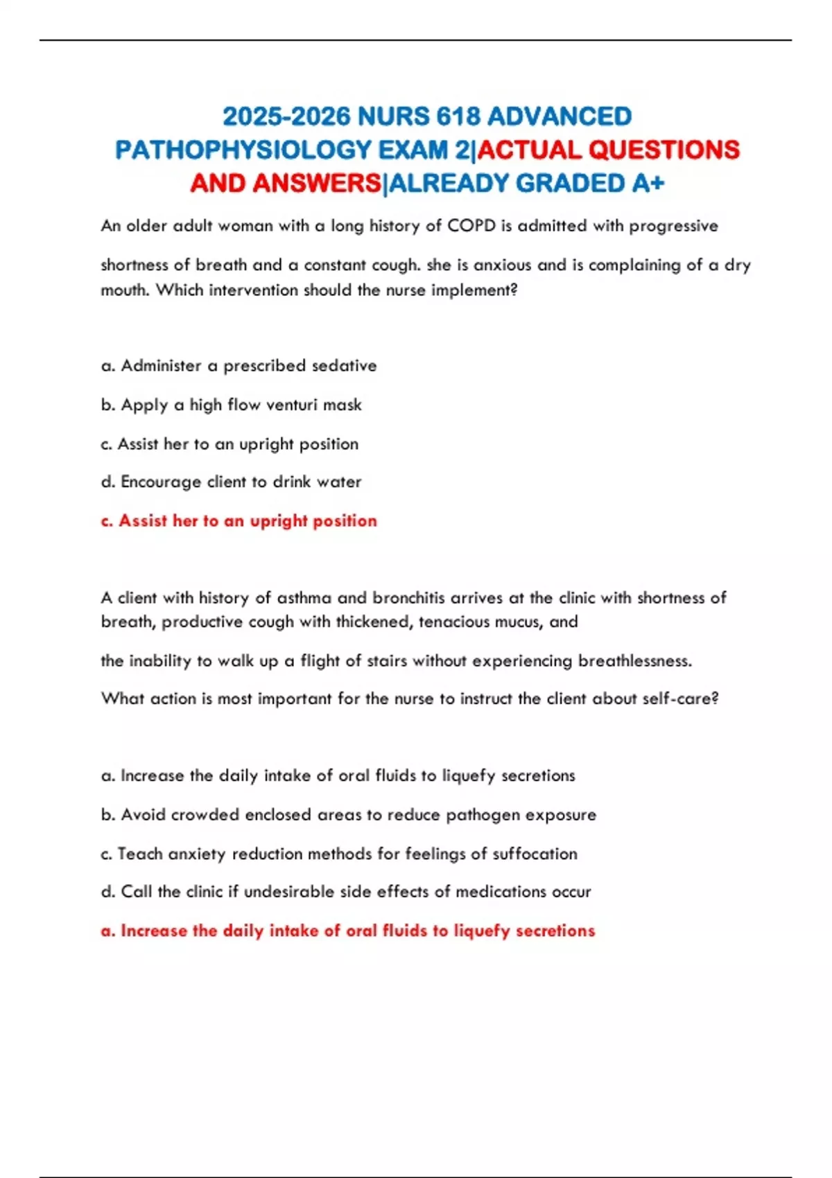 PATHOPHYSIOLOGY EXAM 2|ACTUAL QUESTIONS