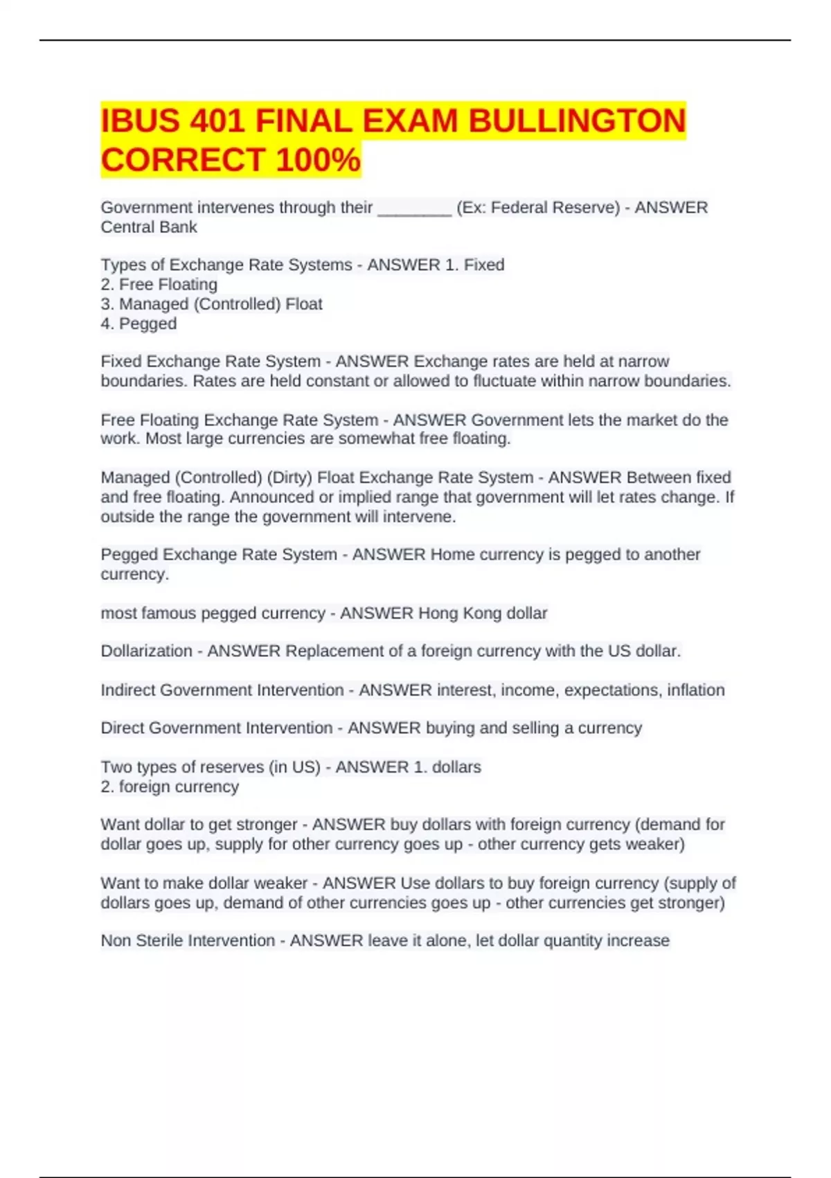 IBUS 401 FINAL EXAM BULLINGTON CORRECT 100%