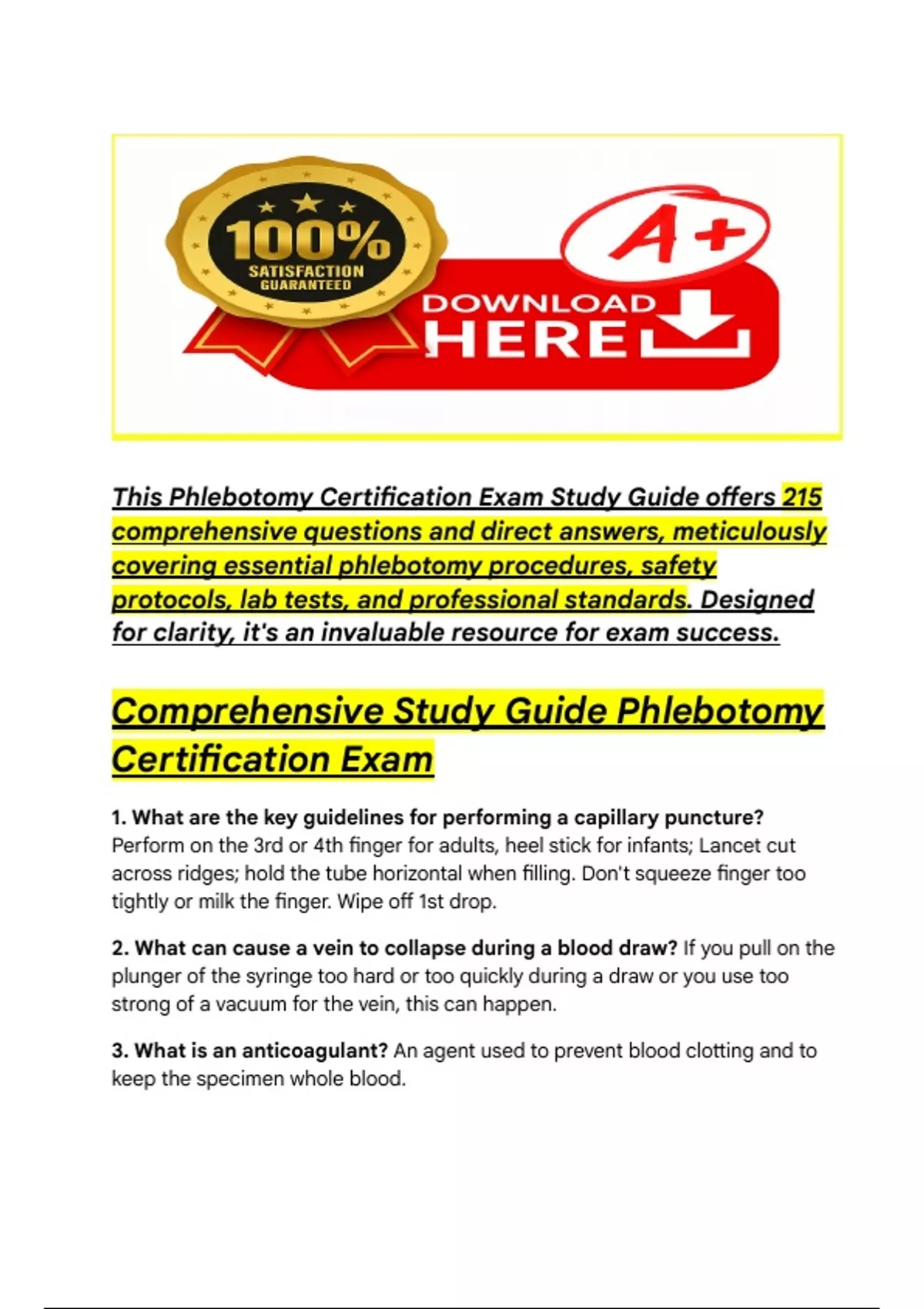 ‭ his Phlebotomy Certification Exam Study Guide offers‬‭215‬