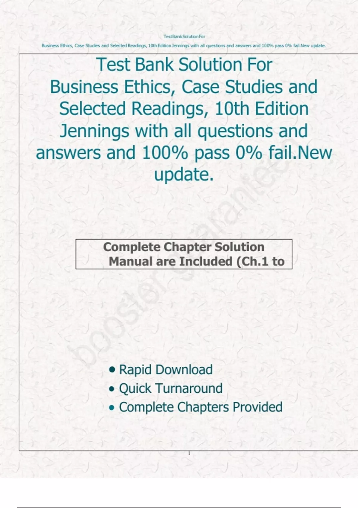 test bank business ethics case studies and selected readings 10th edition jennings inclusive of all chapters with questions and answers to your satisfaction and 100% pass guarantee new