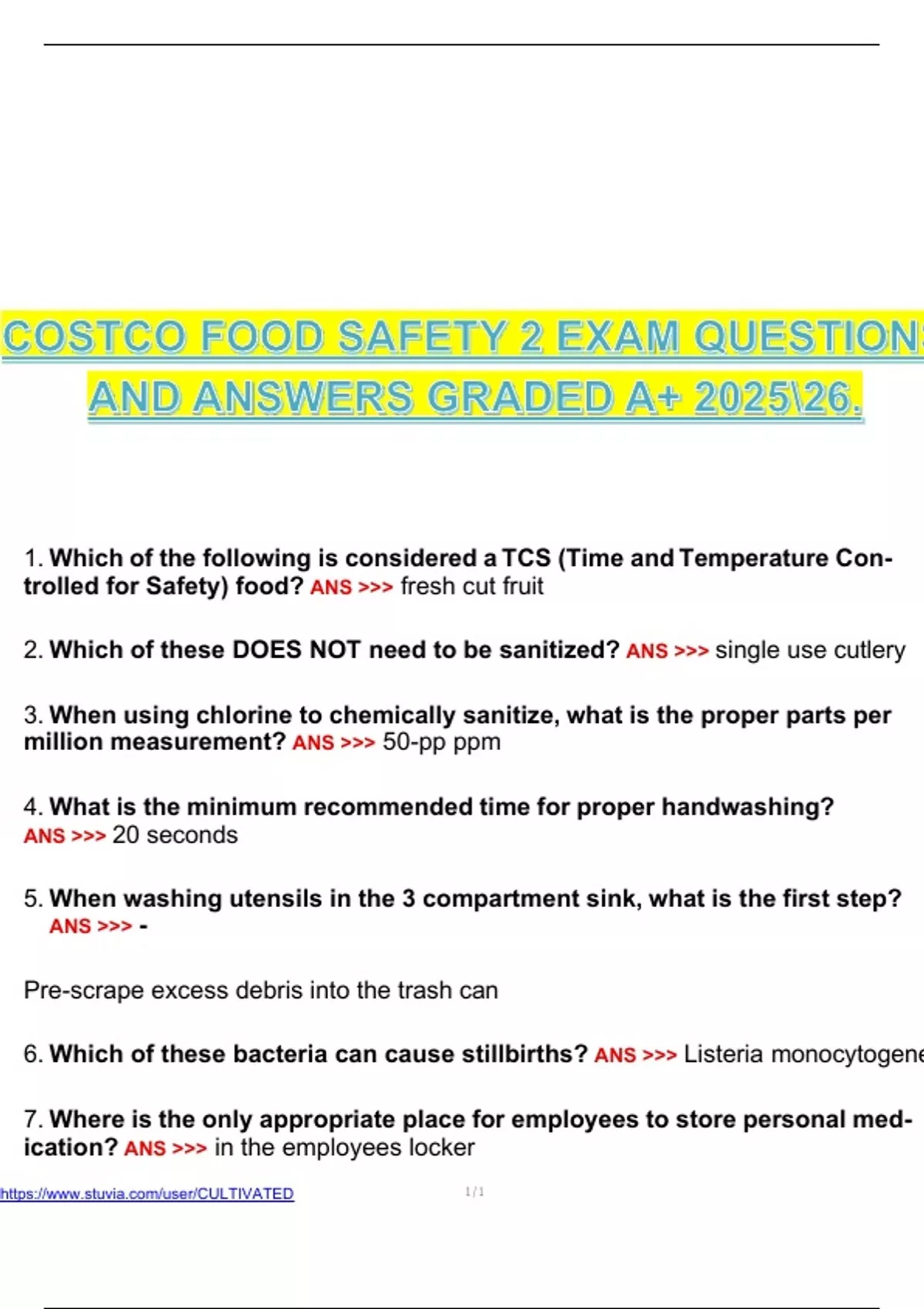 COSTCO FOOD SAFETY 2 EXAM QUESTIONS