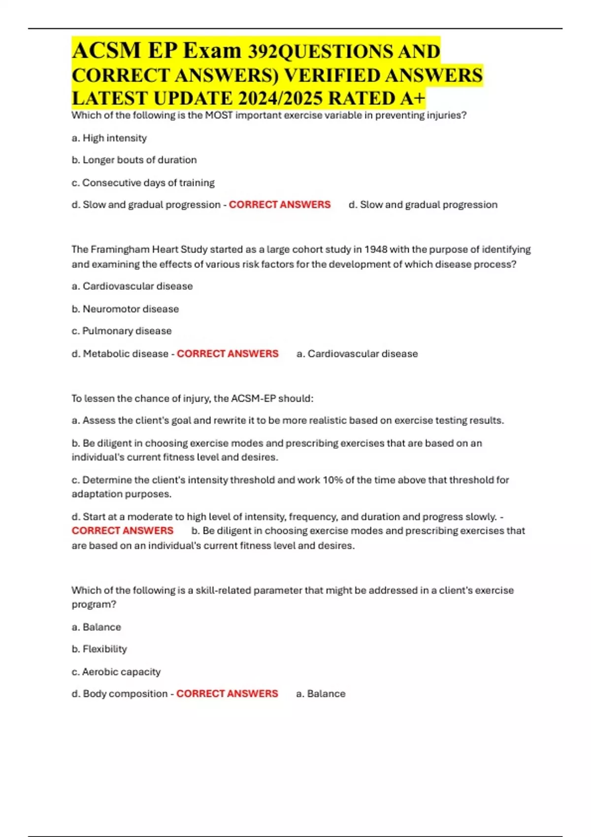 , ACSM EP Exam 392QUESTIONS AND