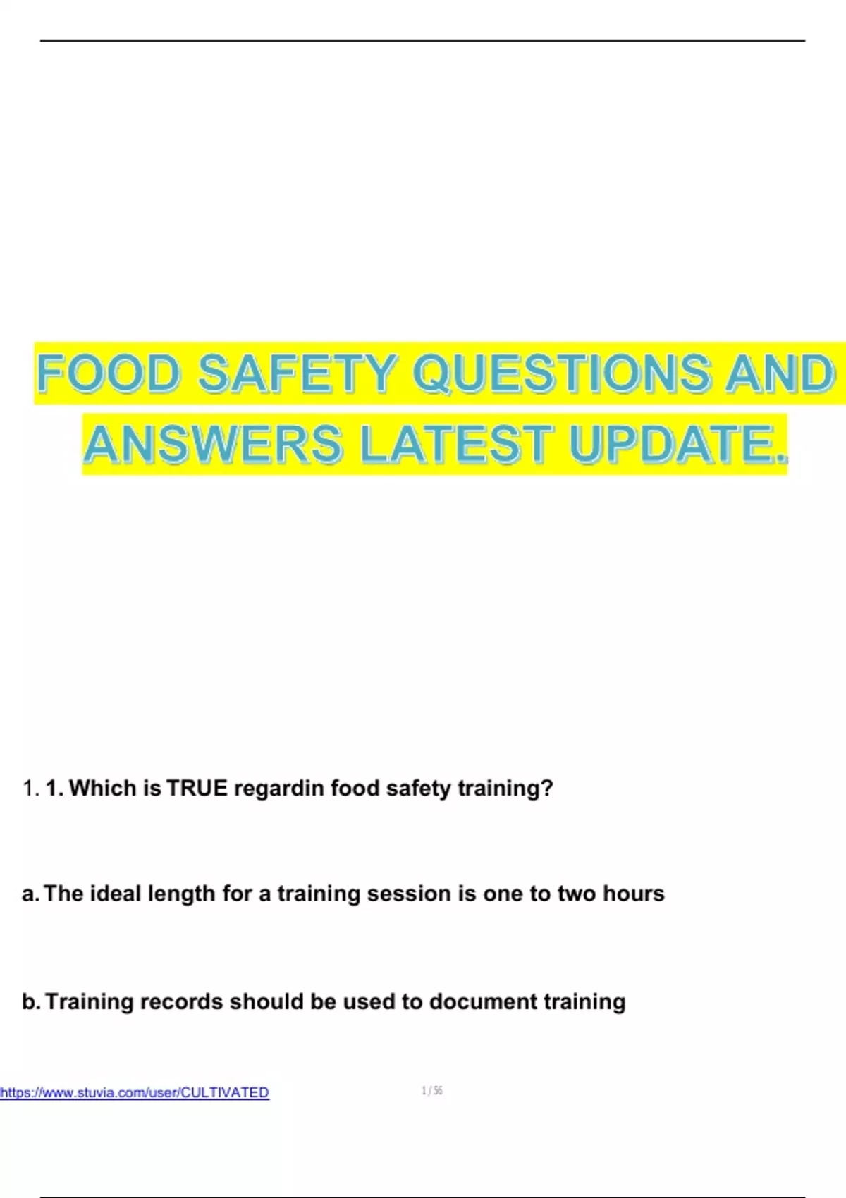 FOOD SAFETY QUESTIONS AND ANSWERS LATEST UPDATE.