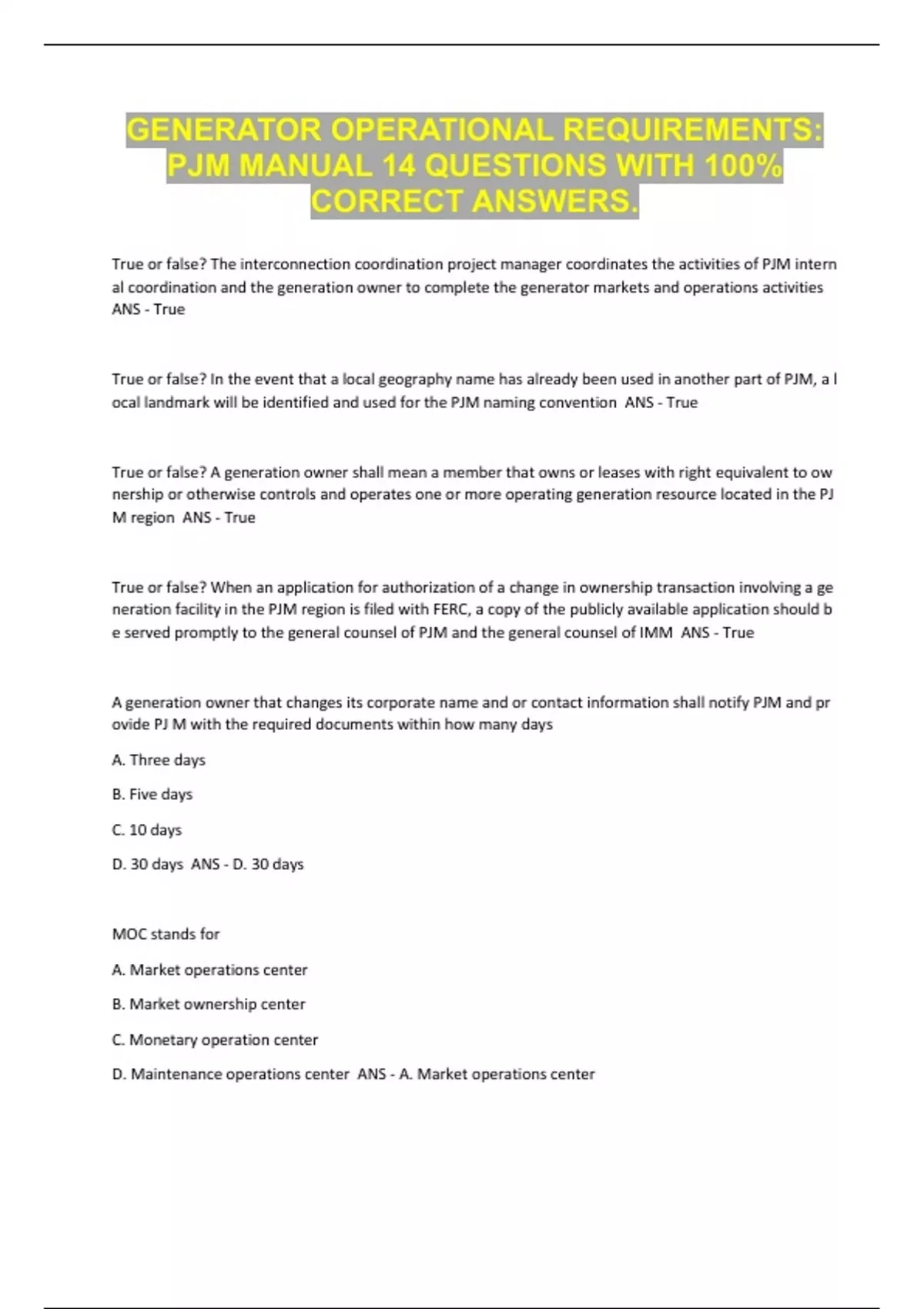 PJM MANUAL 14 QUESTIONS WITH 100%