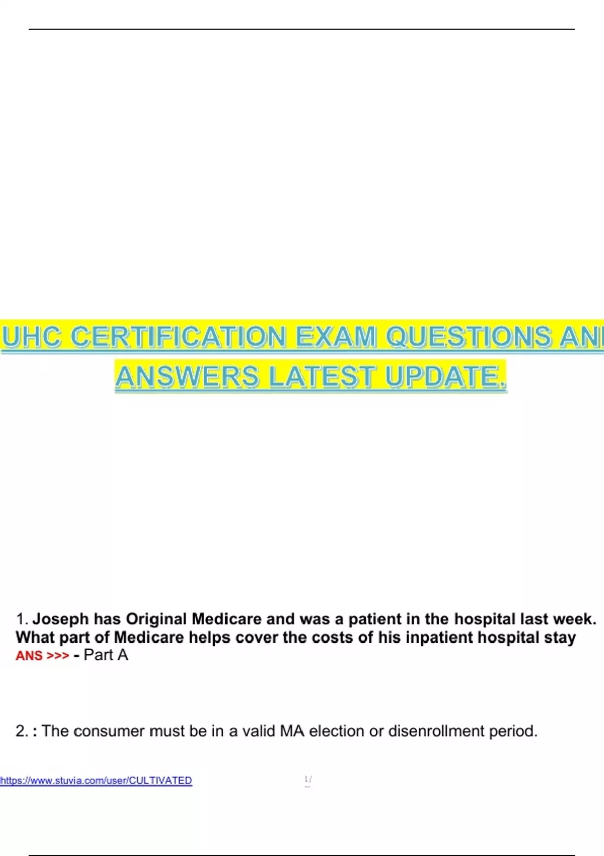 UHC CERTIFICATION EXAM QUESTIONS AND ANSWERS LATEST UPDATE. UHC CERTIFICATION EXAM QUESTIONS AND ANSWERS LATEST UPDATE. UHC CERTIFICATION EXAM QUESTIONS AND ANSWERS LATEST UPDATE. UHC CERTIFICATION EXAM QUESTIONS AND ANSWERS LATEST UPDATE.