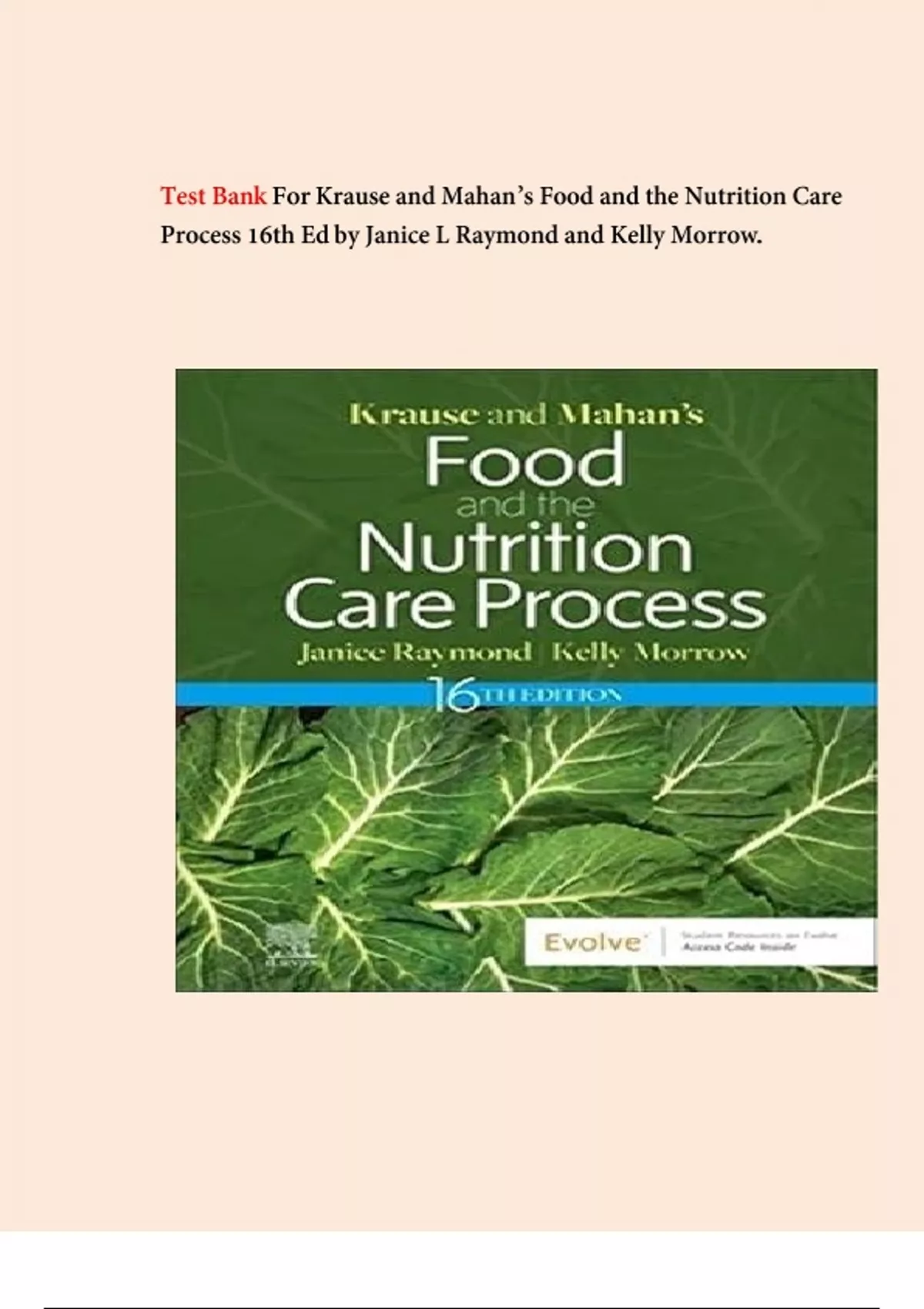 Test Bank - Krause and Mahan’s Food and the Nutrition Care Process (Krause's Food & Nutrition Therapy) 16th Edition by Janice L Raymond, All Chapters | Complete Guide A+