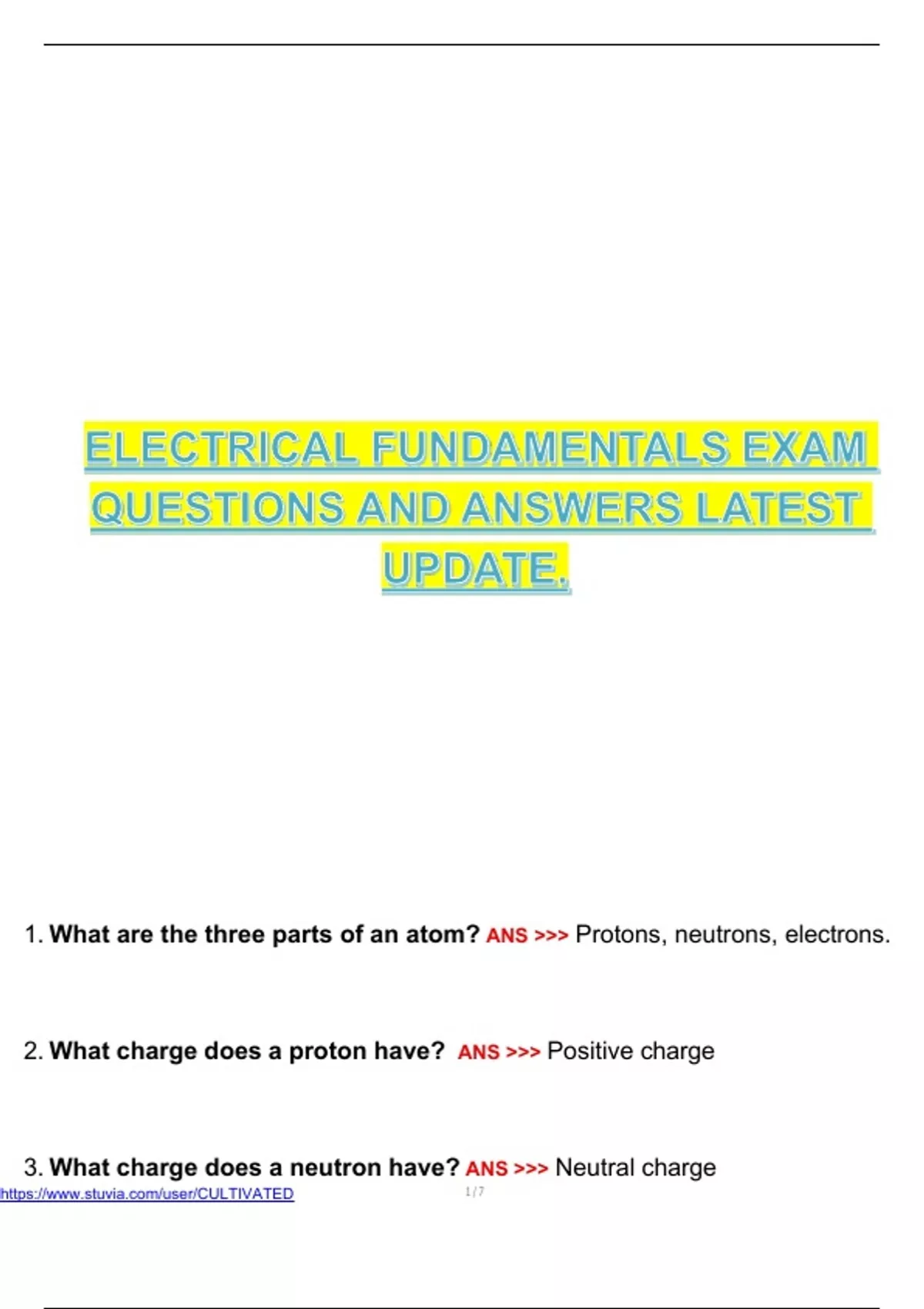 ELECTRICAL FUNDAMENTALS EXAM QUESTIONS AND ANSWERS LATEST UPDATE. ELECTRICAL FUNDAMENTALS EXAM QUESTIONS AND ANSWERS LATEST UPDATE. ELECTRICAL FUNDAMENTALS EXAM QUESTIONS AND ANSWERS LATEST UPDATE.