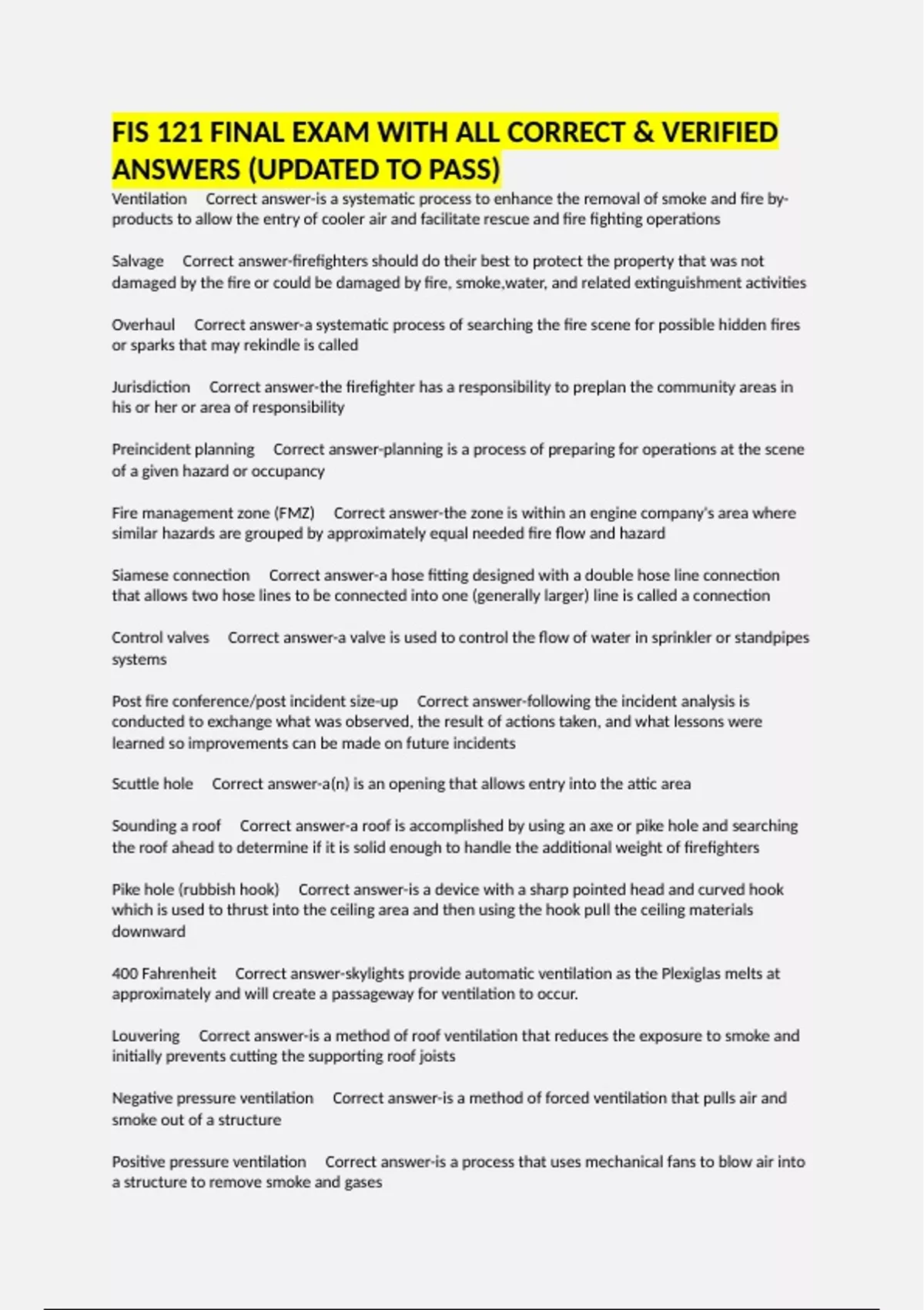 FIS 121 FINAL EXAM WITH ALL CORRECT & VERIFIED ANSWERS (UPDATED TO PASS)