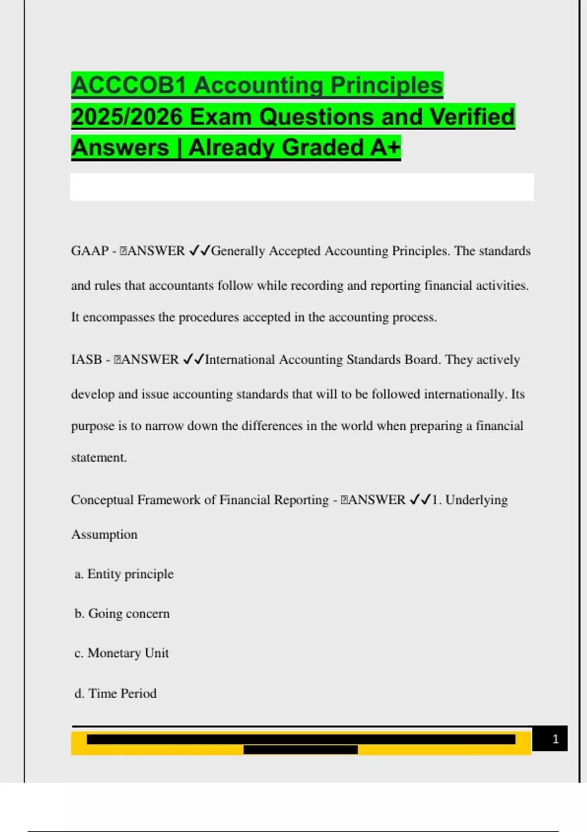 GAAP - 🧠ANSWER ✔✔Generally Accepted Accounting Principles. The standards