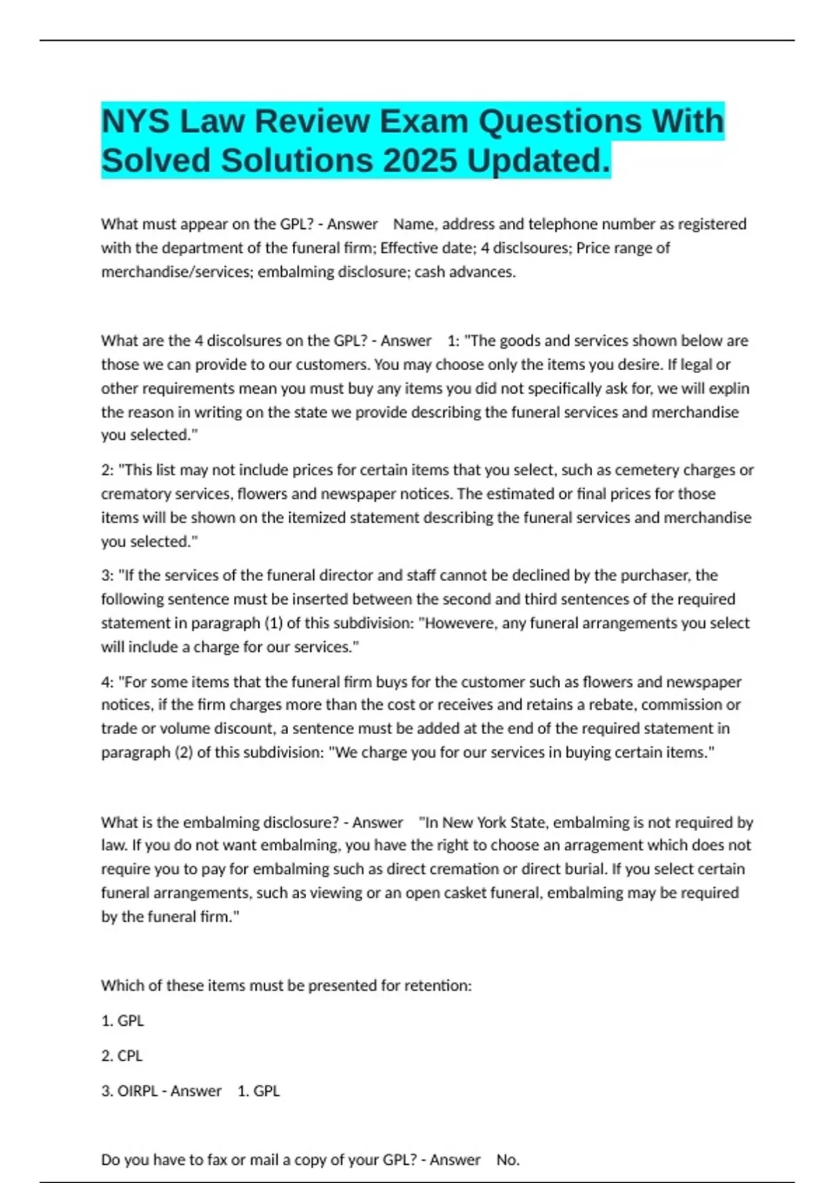 What is the embalming disclosure? - Answer "In New York State, embalming is not required by