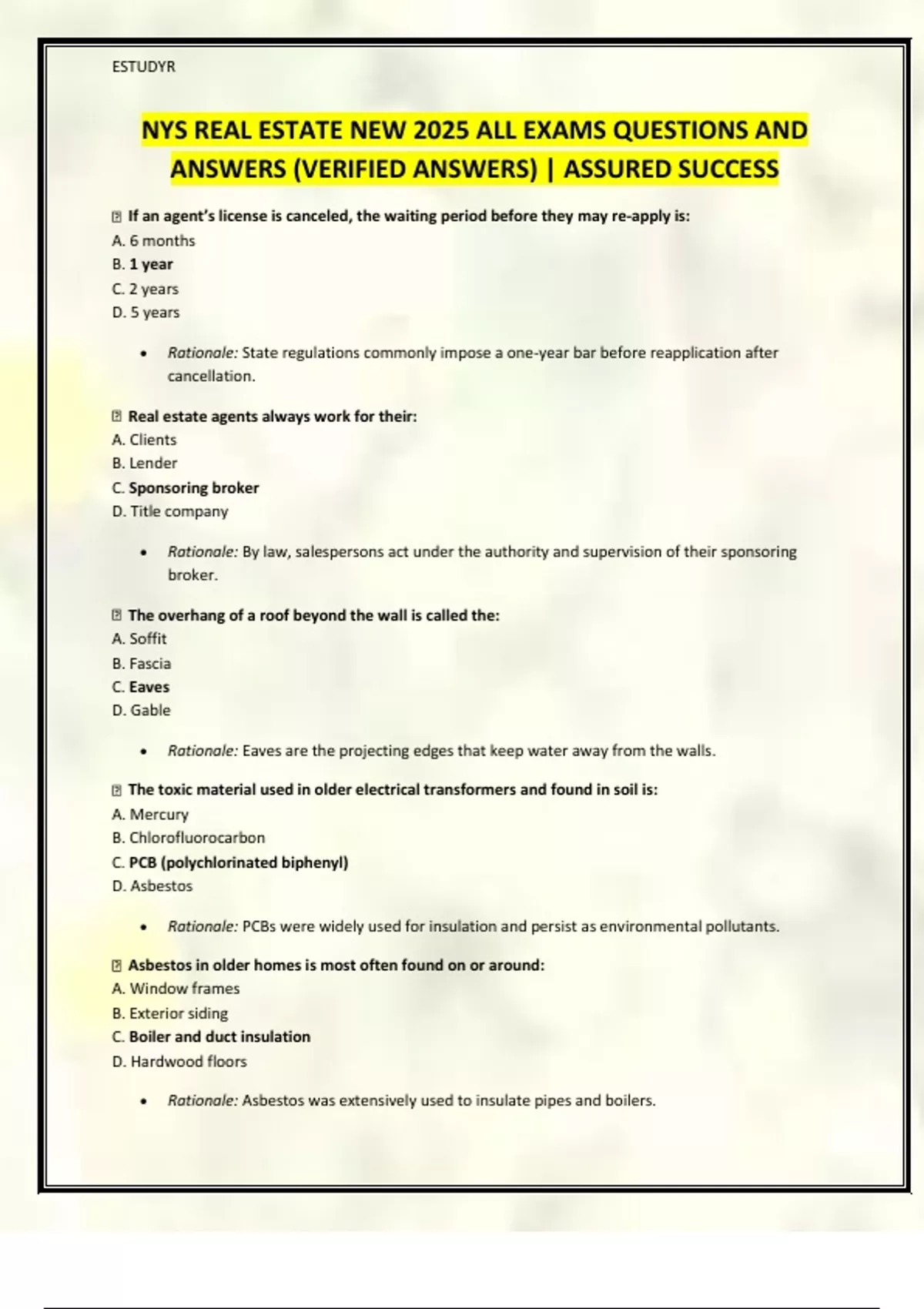 NYS REAL ESTATE NEW 2025 ALL EXAMS QUESTIONS AND