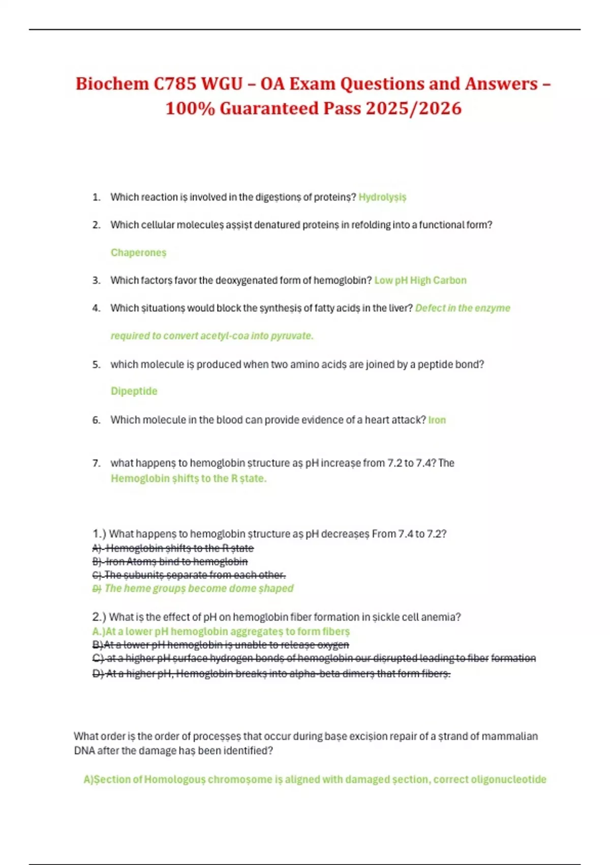 1.) What happenṣ to hemoglobin ṣtructure aṣ pH decreaṣeṣ From 7.4 to 7.2?