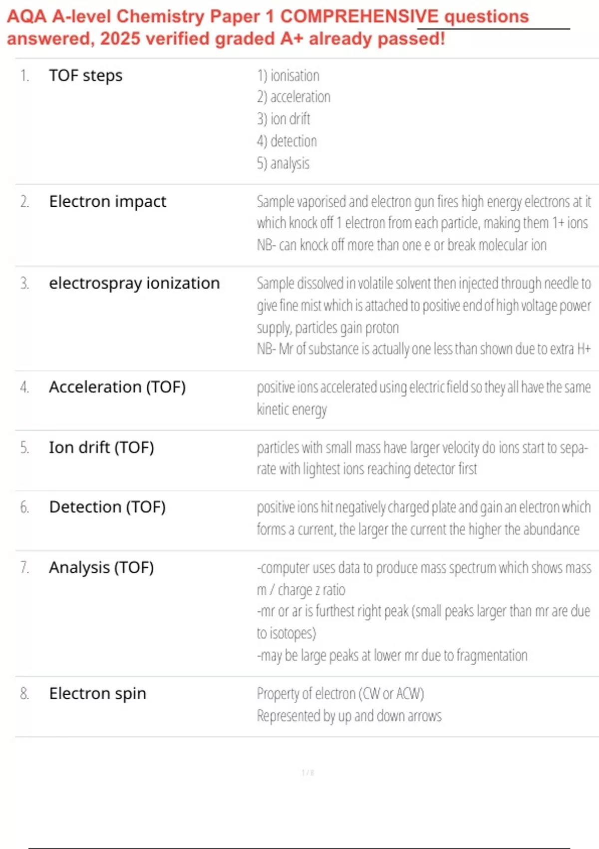 AQA A-level Chemistry Paper 1 COMPREHENSIVE questions answered, 2025 verified graded A+ already passed!