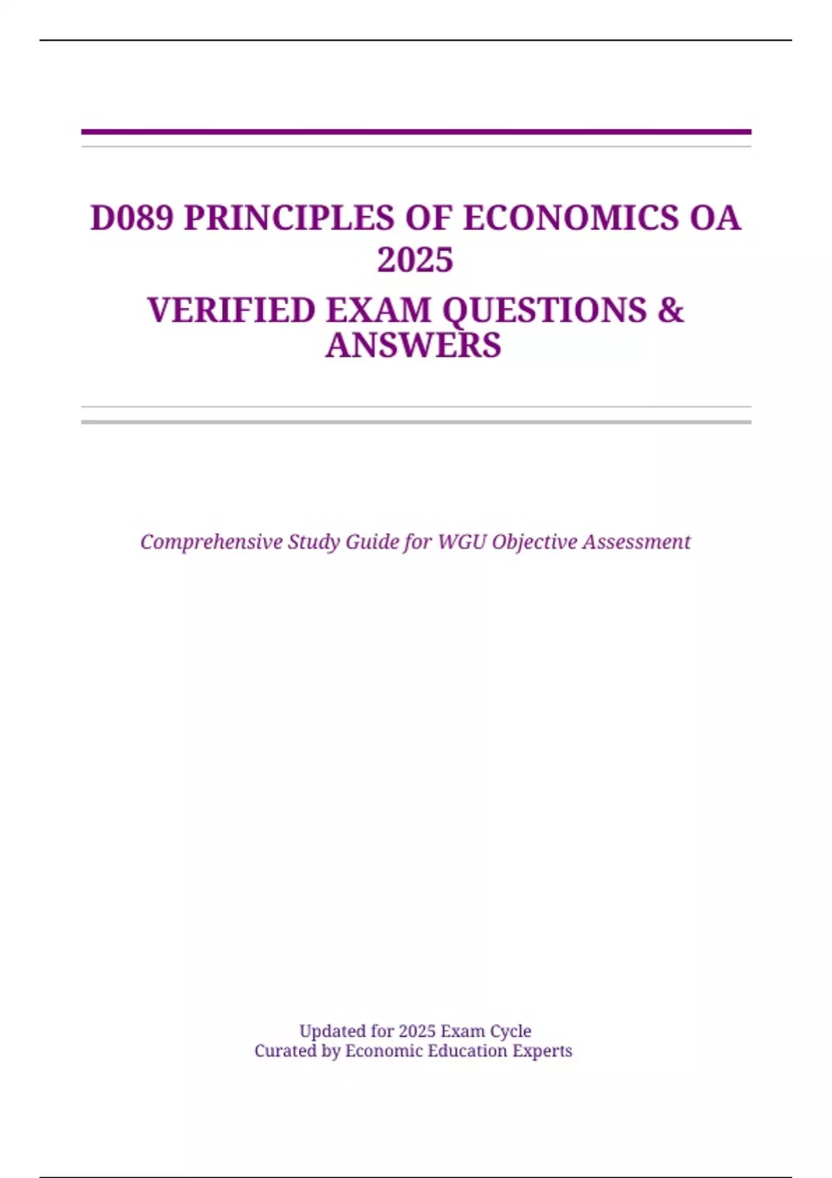 , D089 Principles of Economics OA 2025 July 3, 2025
