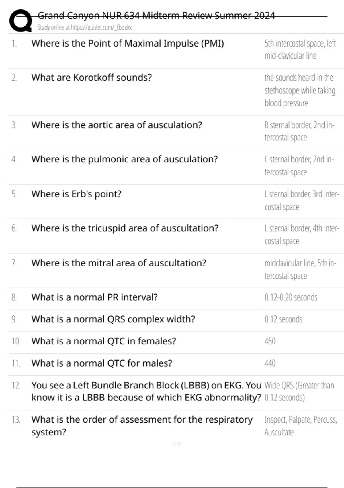 1. Where is the Point of Maximal Impulse (PMI) 5th intercostal space, left