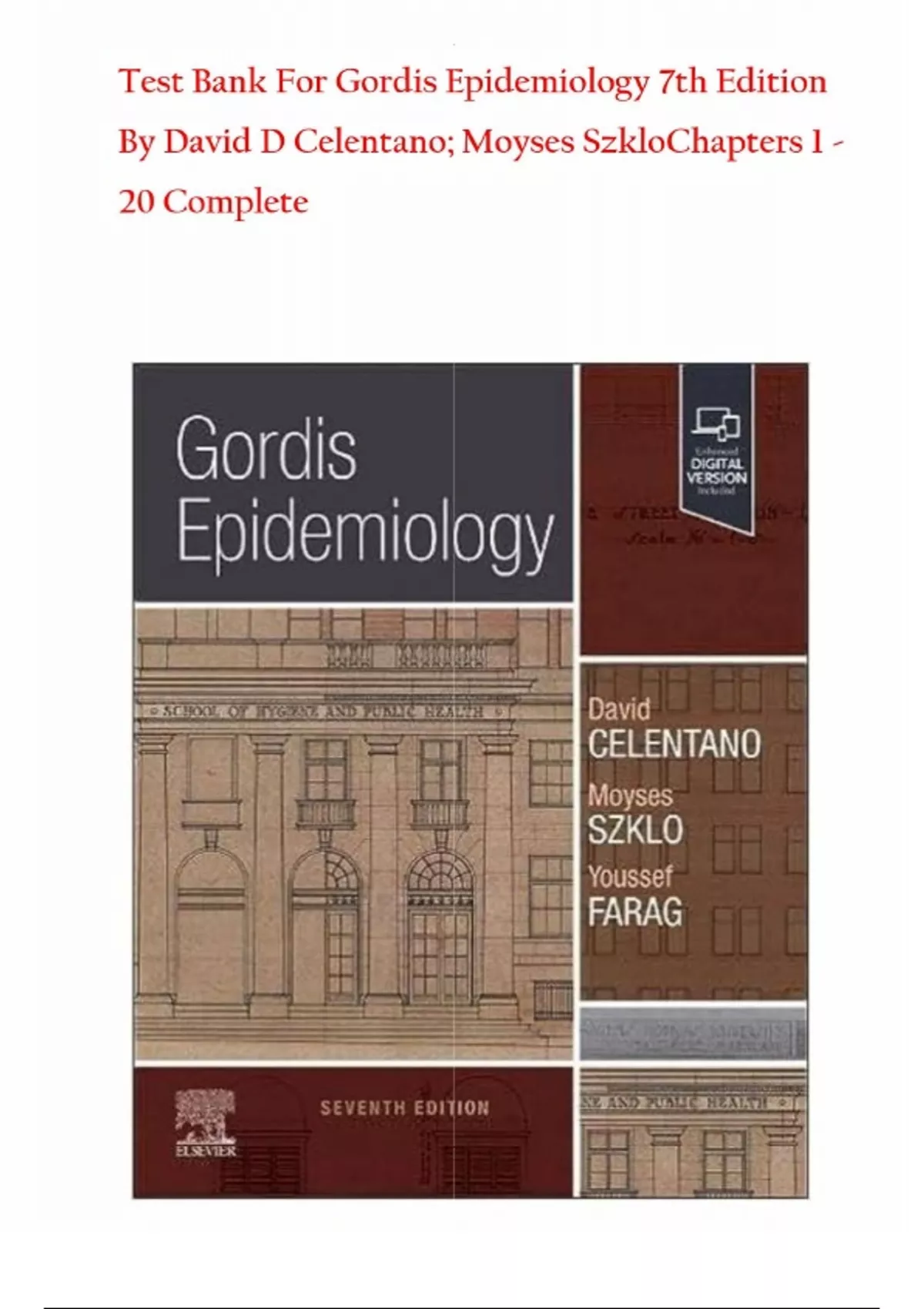 Test Bank For Gordis Epidemiology 7th Edition By David D Celentano; Moyses SzkloChapters 1 - 20 Complete.pdfTest Bank For Gordis Epidemiology 7th Edition By David D Celentano; Moyses SzkloChapters 1 - 20 Complete.pdf