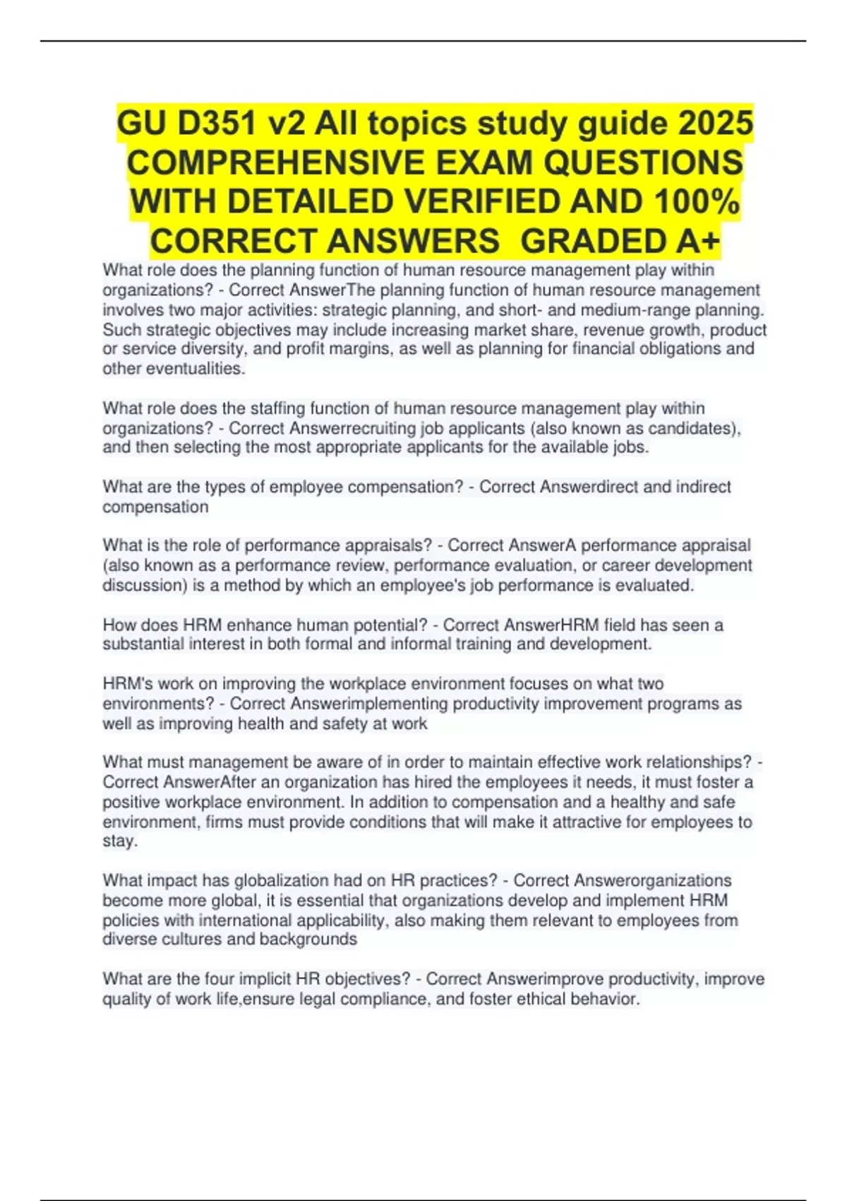 CORRECT ANSWERS GRADED A+