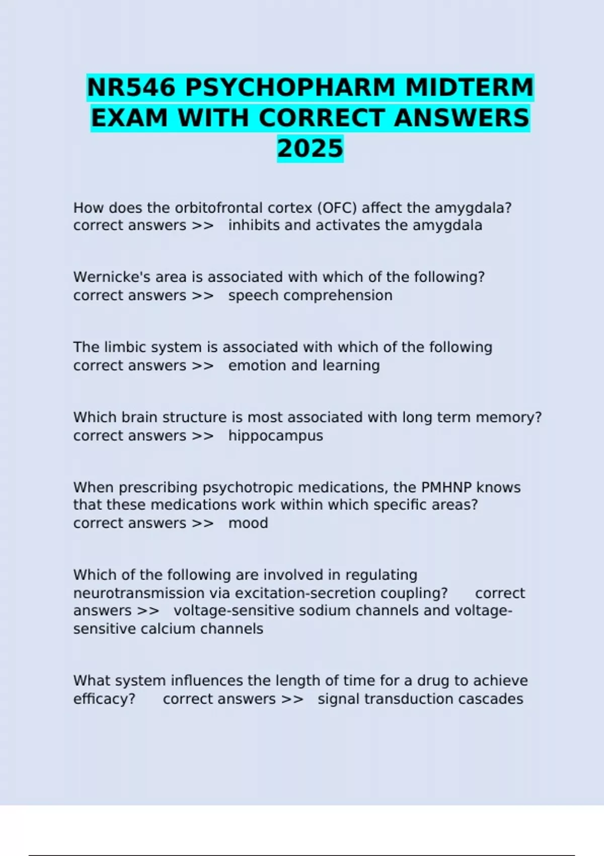 NR546 PSYCHOPHARM MIDTERM EXAM WITH CORRECT ANSWERS 2025