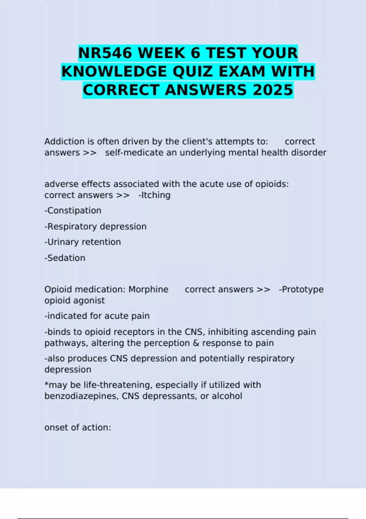 NR546 WEEK 6 TEST YOUR KNOWLEDGE QUIZ EXAM WITH CORRECT ANSWERS 2025