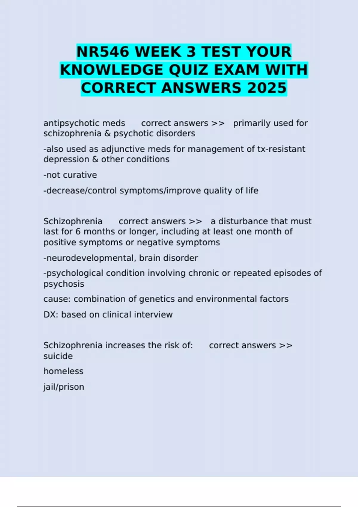 antipsychotic meds correct answers >> primarily used for