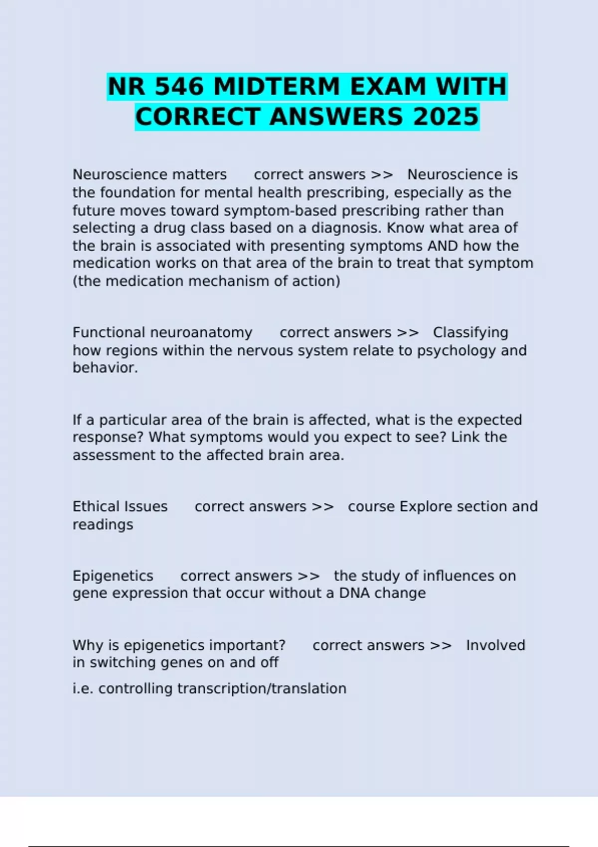 NR 546 MIDTERM EXAM WITH CORRECT ANSWERS 2025