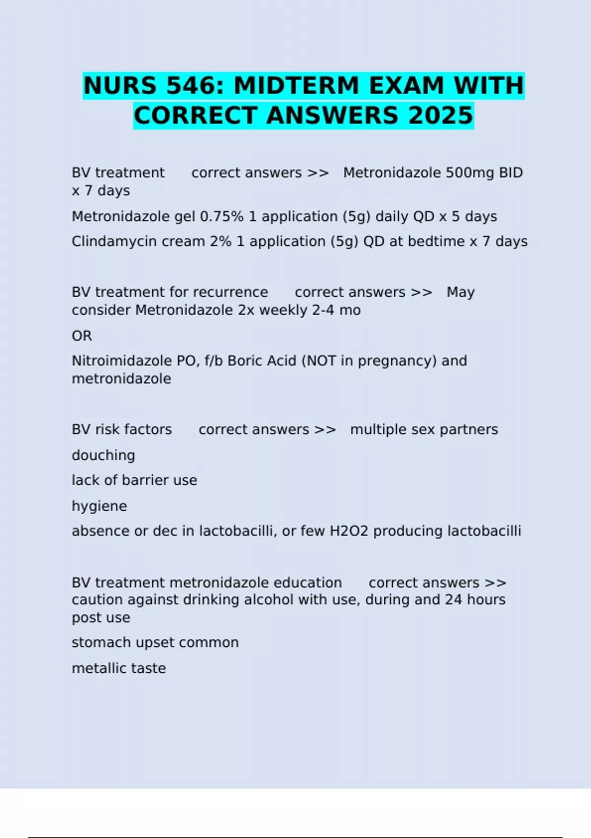 Tx for RVVC correct answers >> 7-14 days topical therapy