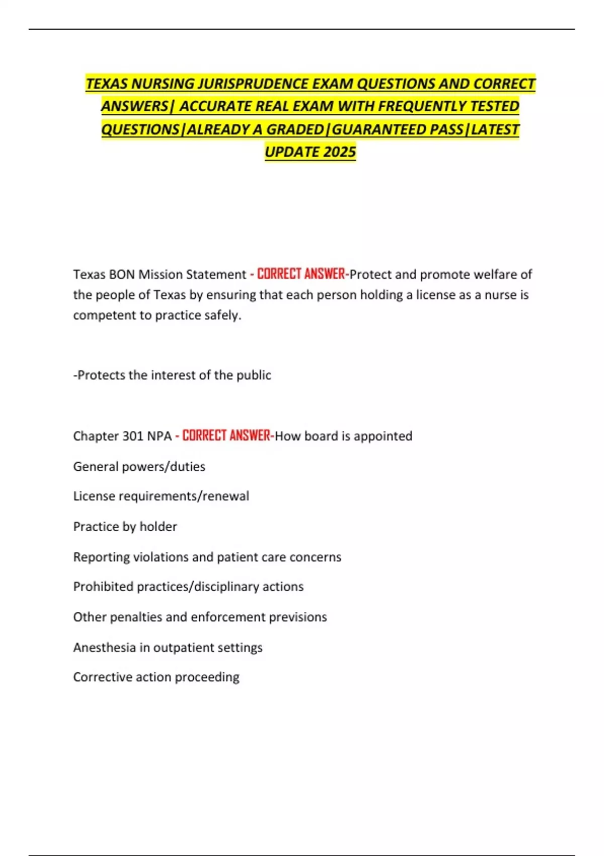 Texas Nurse Practice Acts - CORRECT ANSWER-301