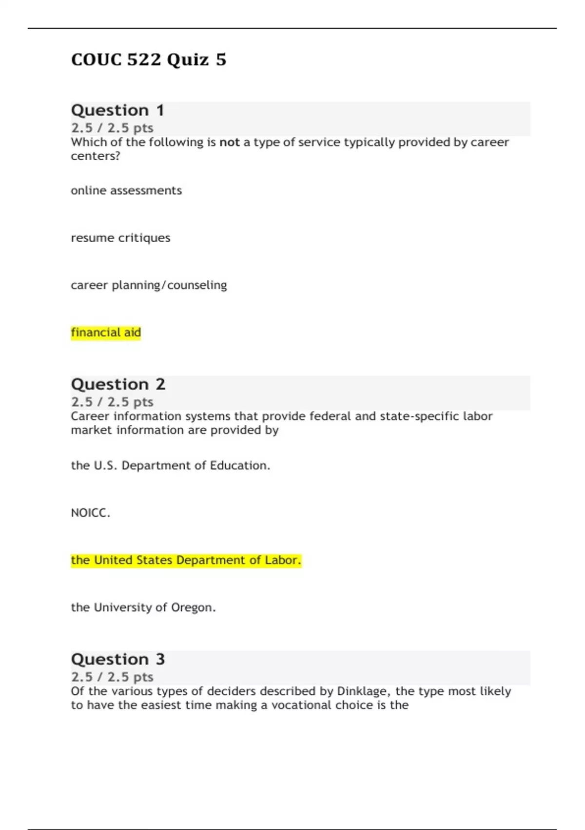 COUC 522 Quiz 5 | Questions and Answers | Liberty University
