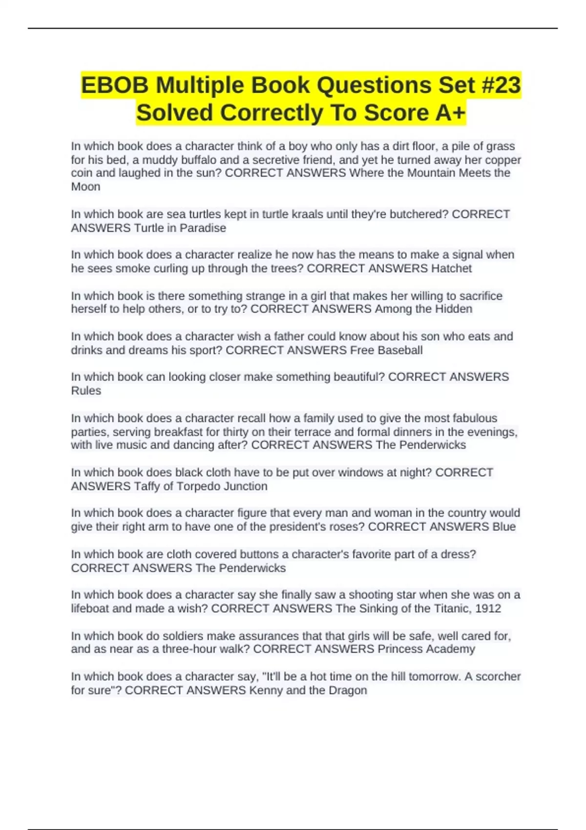 EBOB Multiple Book Questions Set #23 Solved Correctly To Score A+