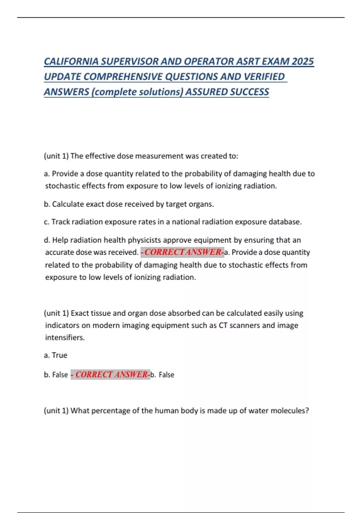 CALIFORNIA SUPERVISOR AND OPERATOR ASRT EXAM 2025 UPDATE COMPREHENSIVE QUESTIONS AND VERIFIED ANSWERS (complete solutions) ASSURED SUCCESS