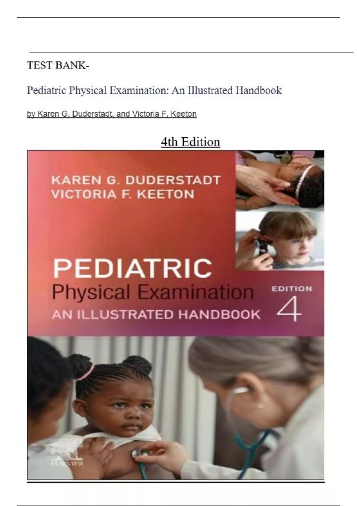 ,Pediatric Physical Examination 4th Edition Duderstadt TESTBANK